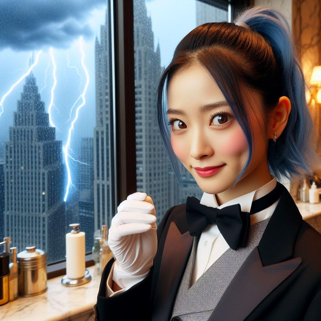雷鳴轟く美容院でカラーリングしてもらう執事ちゃん