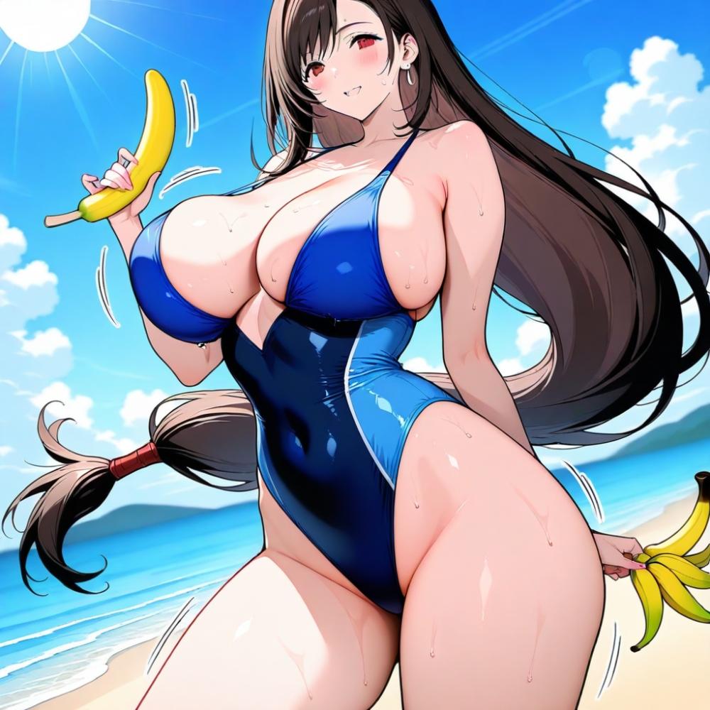 夏のバナナ乗り物に乗るSF絵&コスプレ人妻