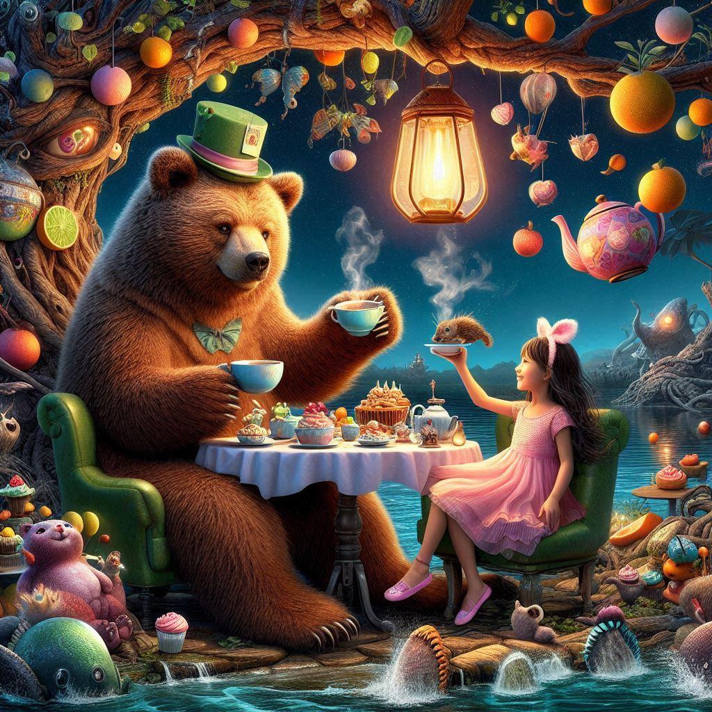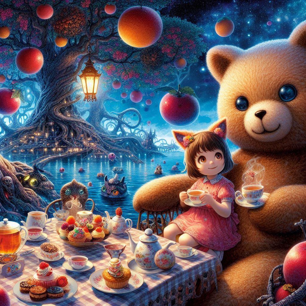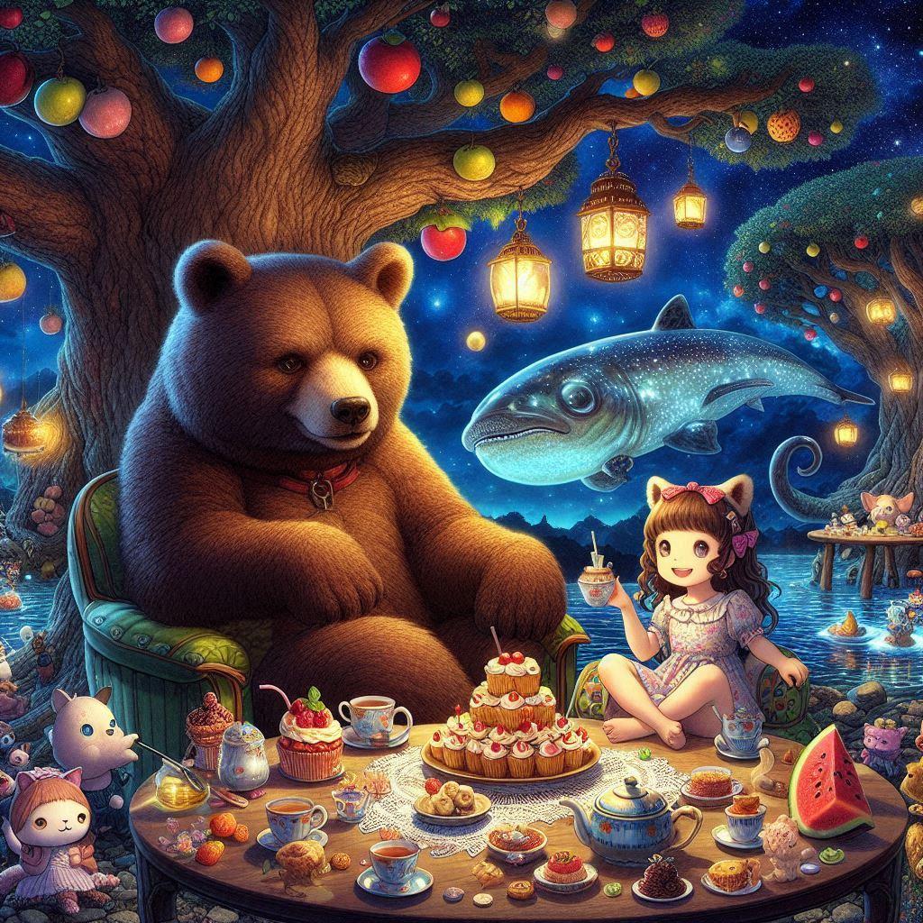 森のクマさんは夜中にこっそり湖の近くでピクニック