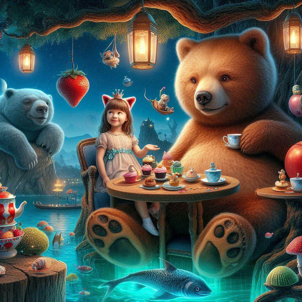 ある日少女はこっそりクマさんをの後を追いかけ湖の畔までやってきました