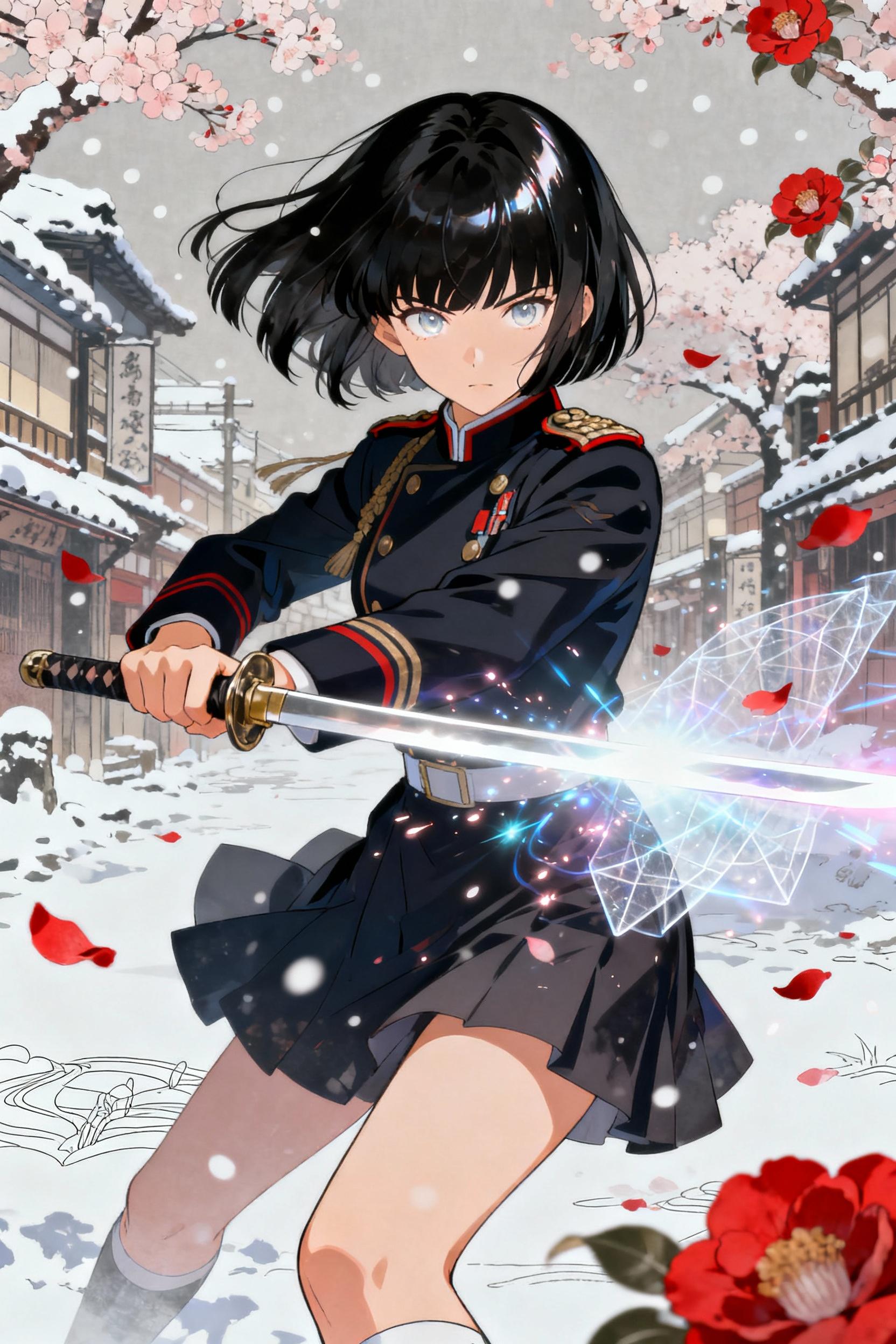 刀に宿る輝きは、花の如き美しさと鋭さ。