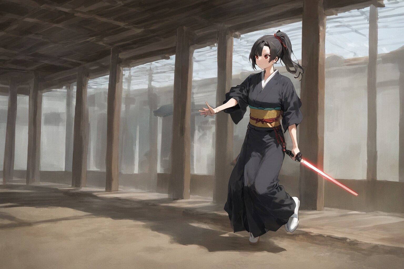 現役の美術部員と剣道部員と一緒に旧美術部の部屋の大掃除を果たした綴先生。による門外不出の光剣演舞です