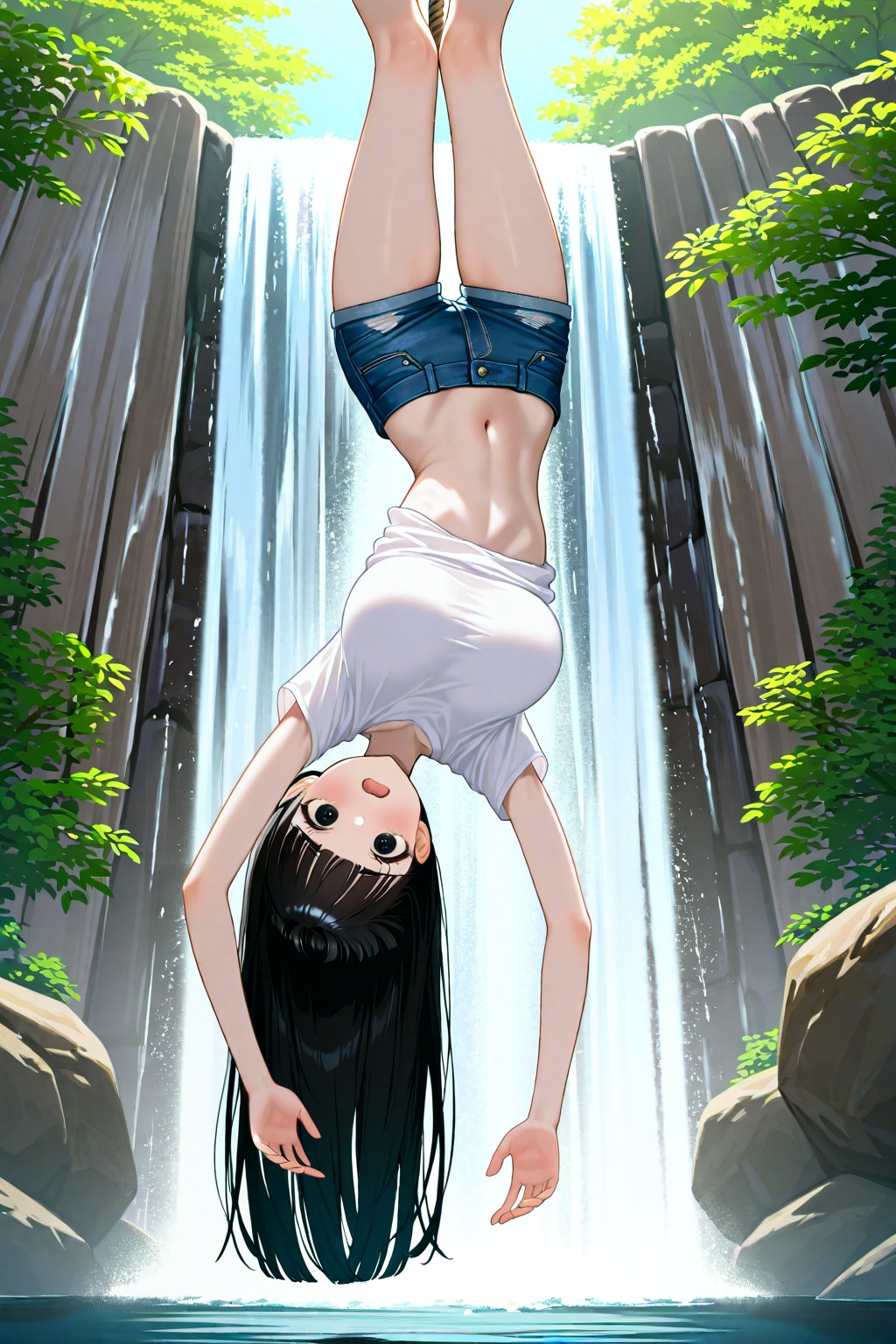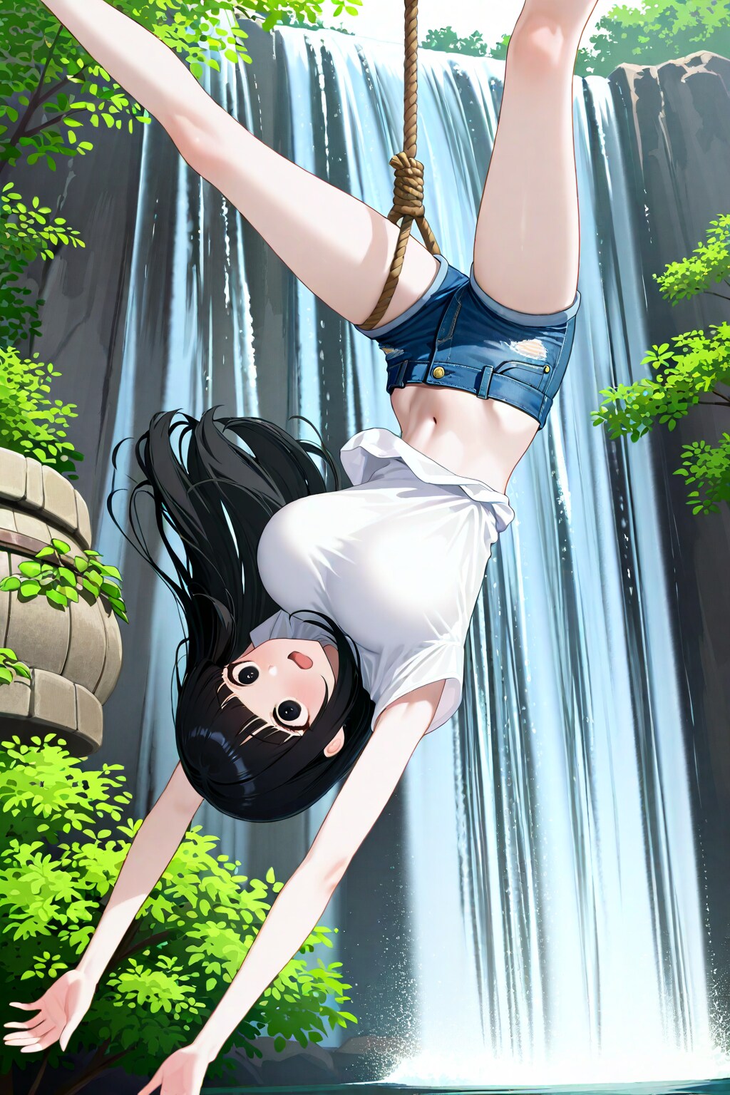 女は度胸!と滝つぼにあるバンジージャンプにチャレンジするサキちゃん
