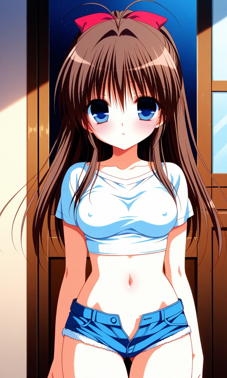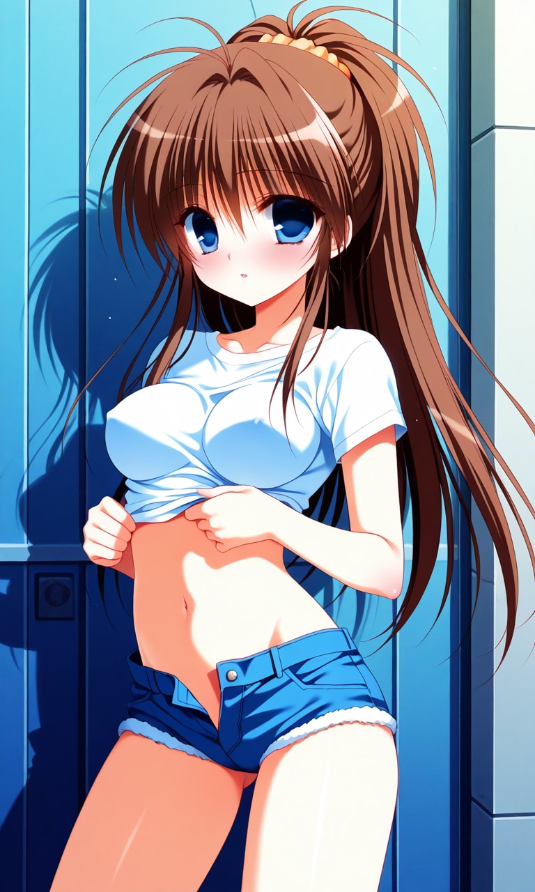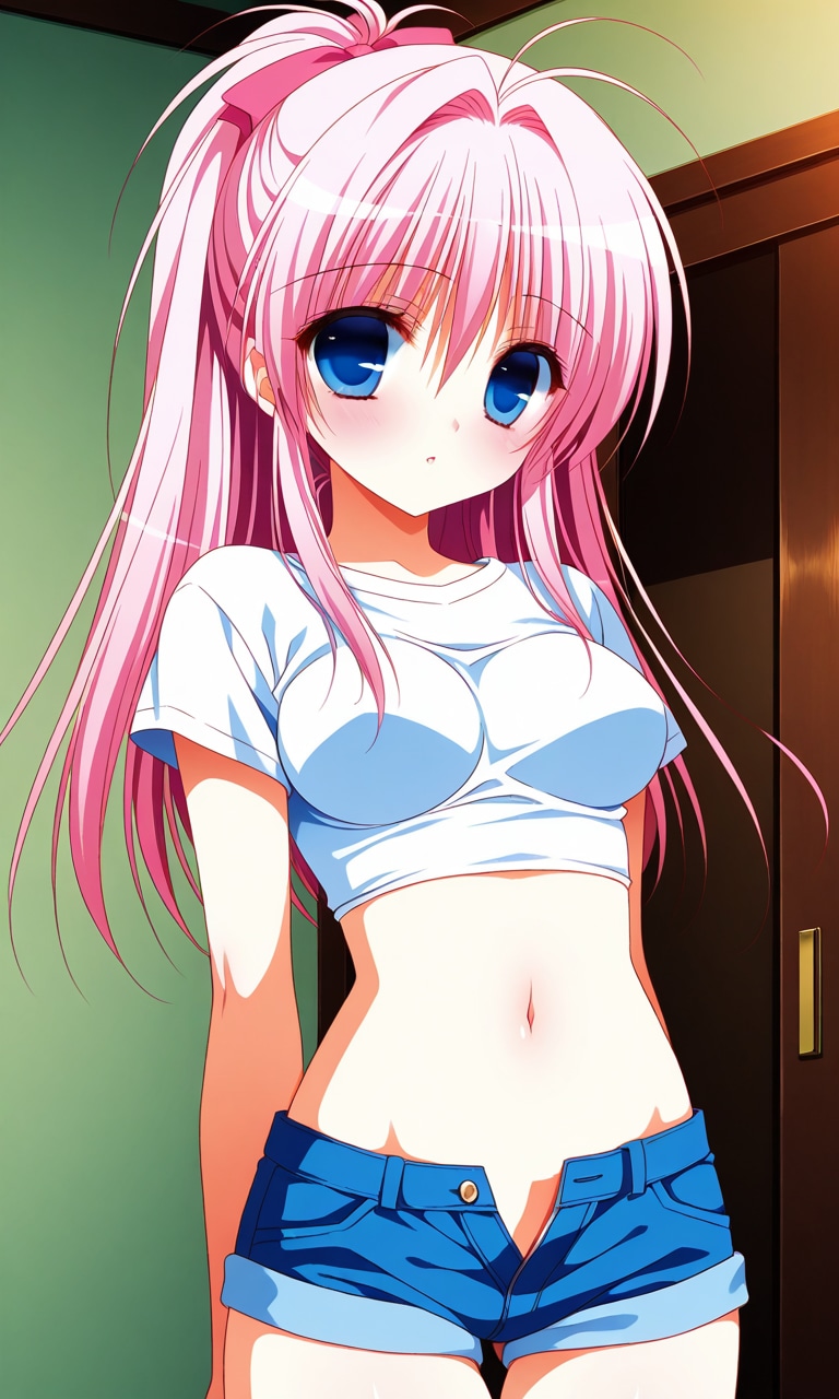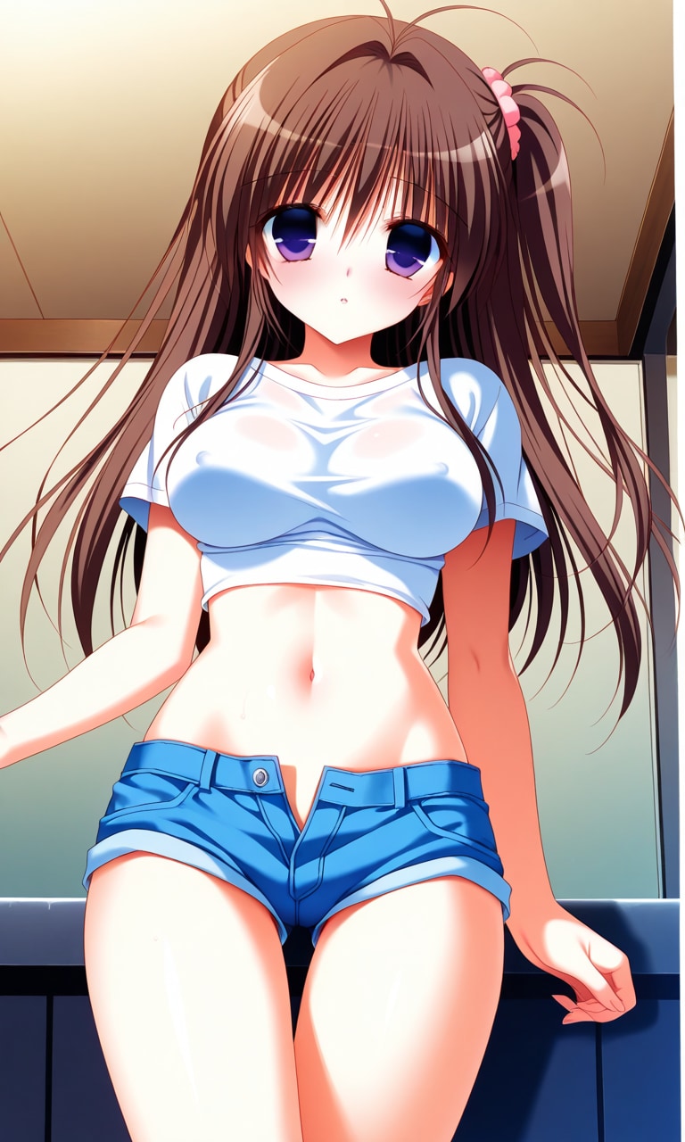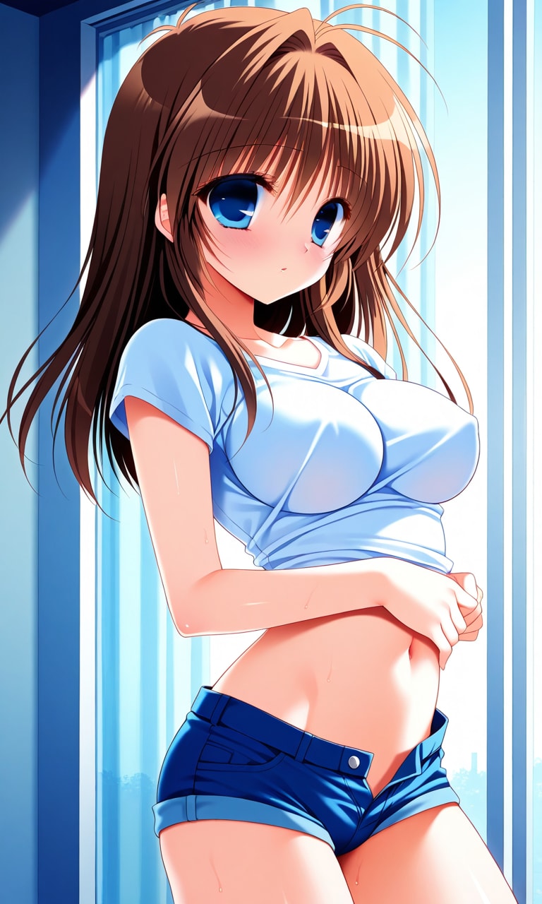 へそ出しぴっちりTシャツにギリギリまで開けたホットパンツに胸と股間は激しくヒートアップ。