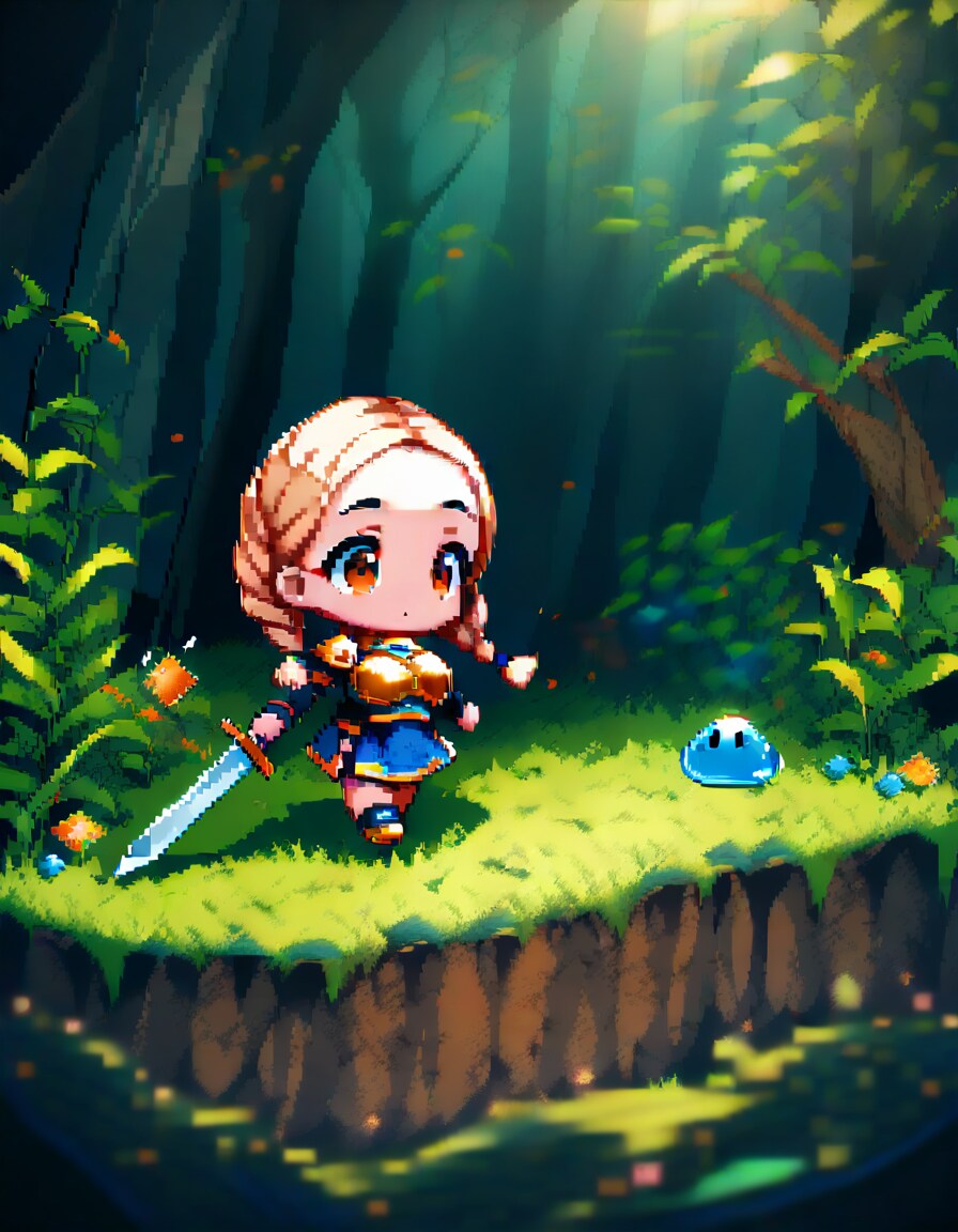 昔のアクションRPGっぽい感じのピクセルアートな画像を生成してみたり!