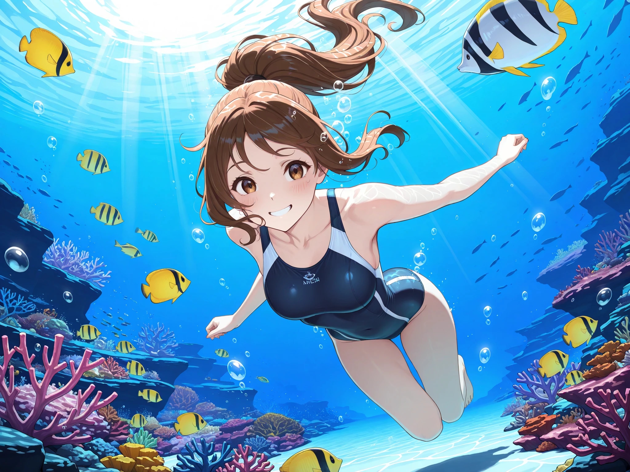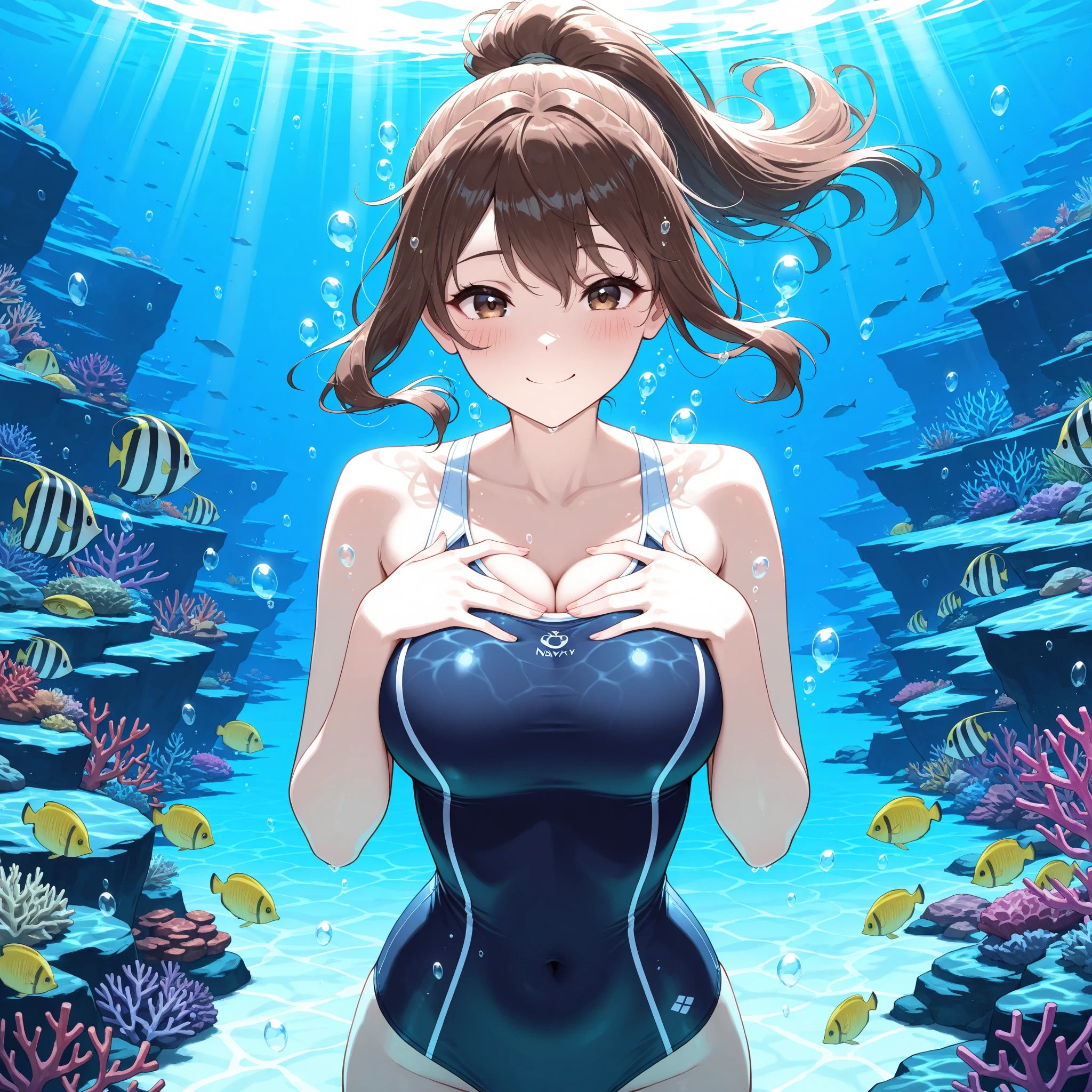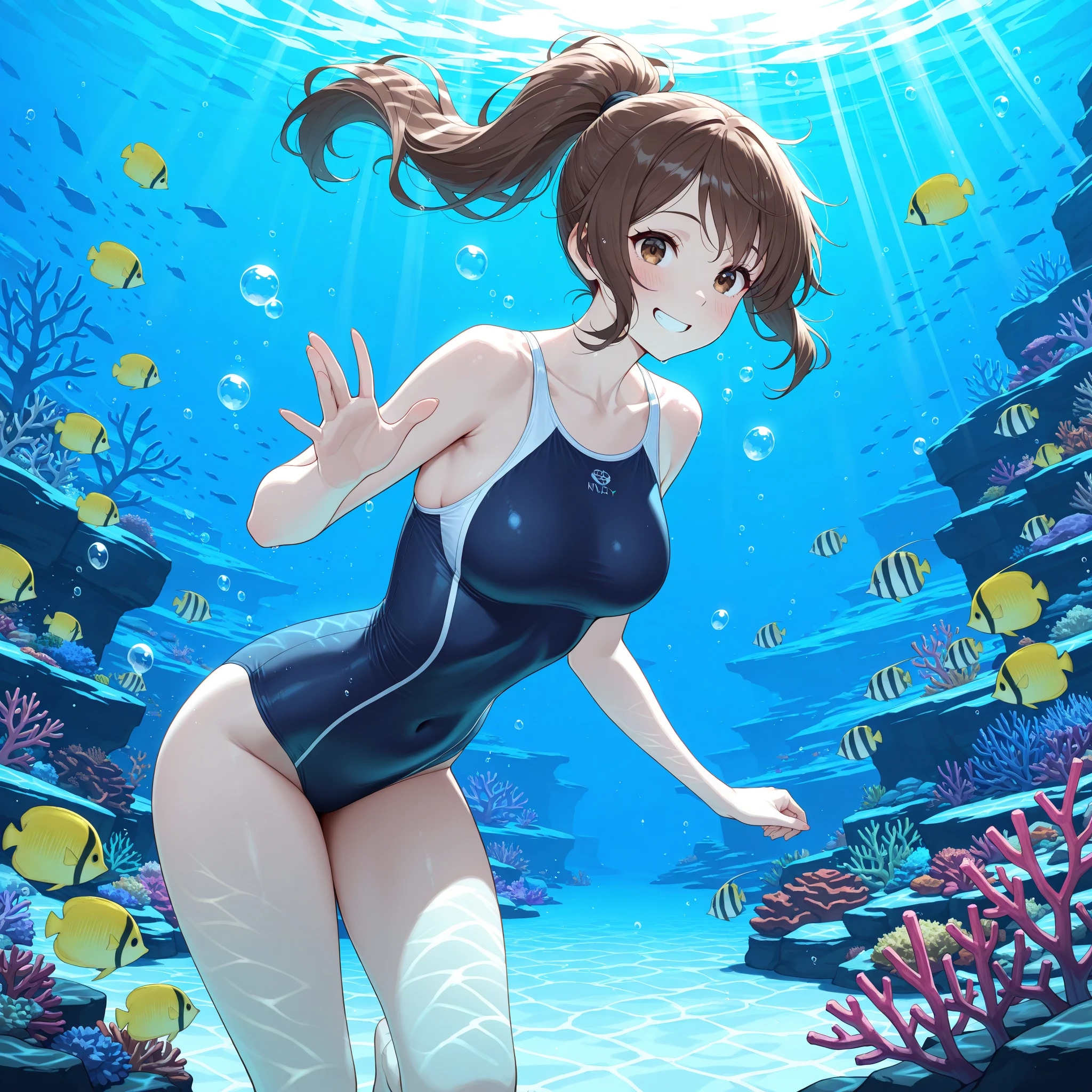 水中詰め合わせ 茶髪ポニーテール✕競泳水着編