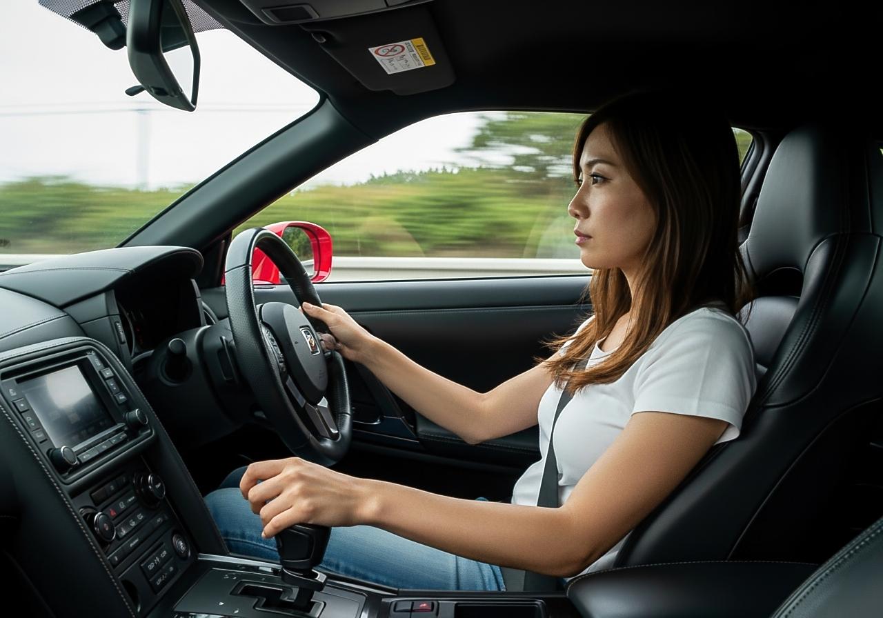 👩「ふぅ……(ハンドルを握ると、表情が一変)じゃあ、本当のGT-Rってやつを見せてあげる。」