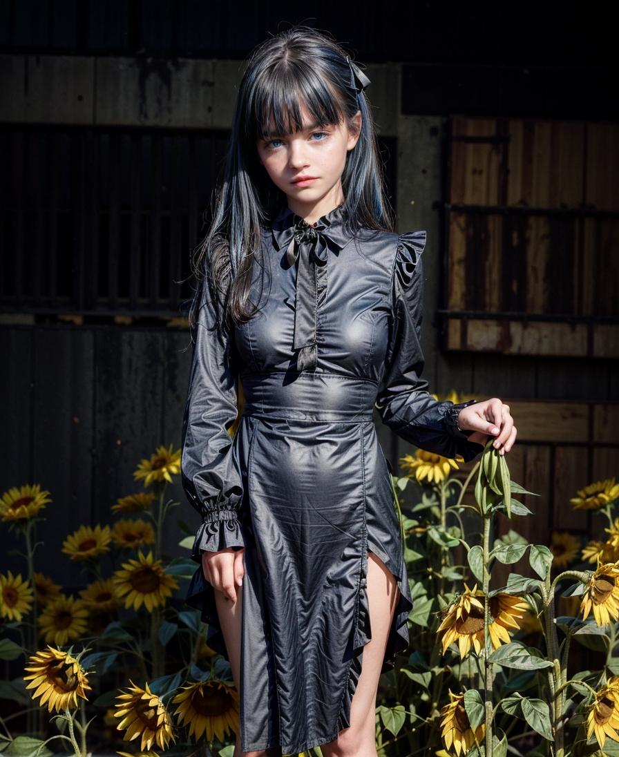 向日葵といえば当然『陽』のイメージですが、ひねくれているので逆張りしダークな雰囲気と組み合わせてコントラストを強調しようと画策しました。
