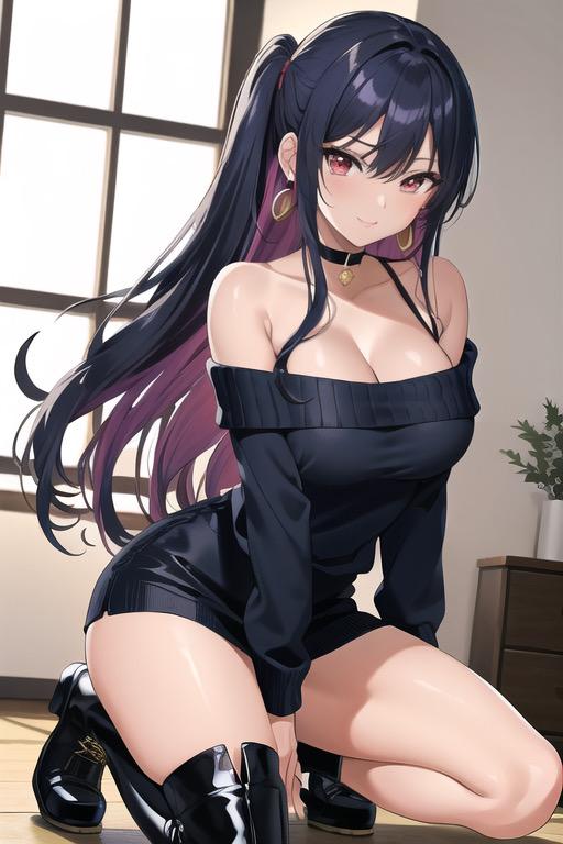 オフショルダーファッションに身を包んだお姉さん達のイラスト集。