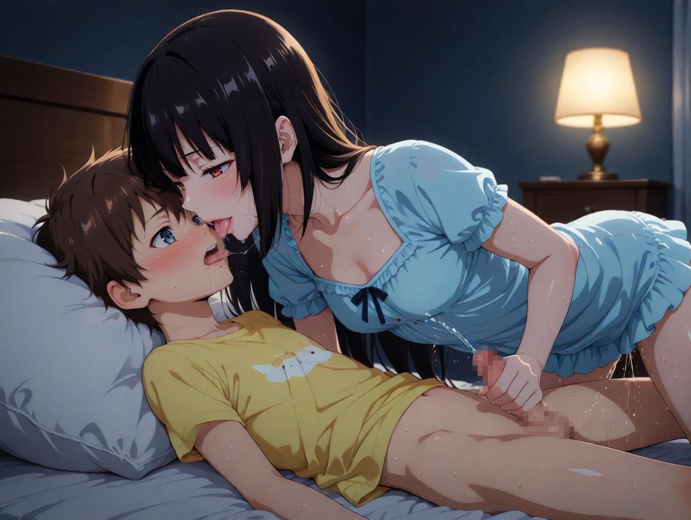 疲れ切って寝落ちするまで何度も絞られたショタ君でした。