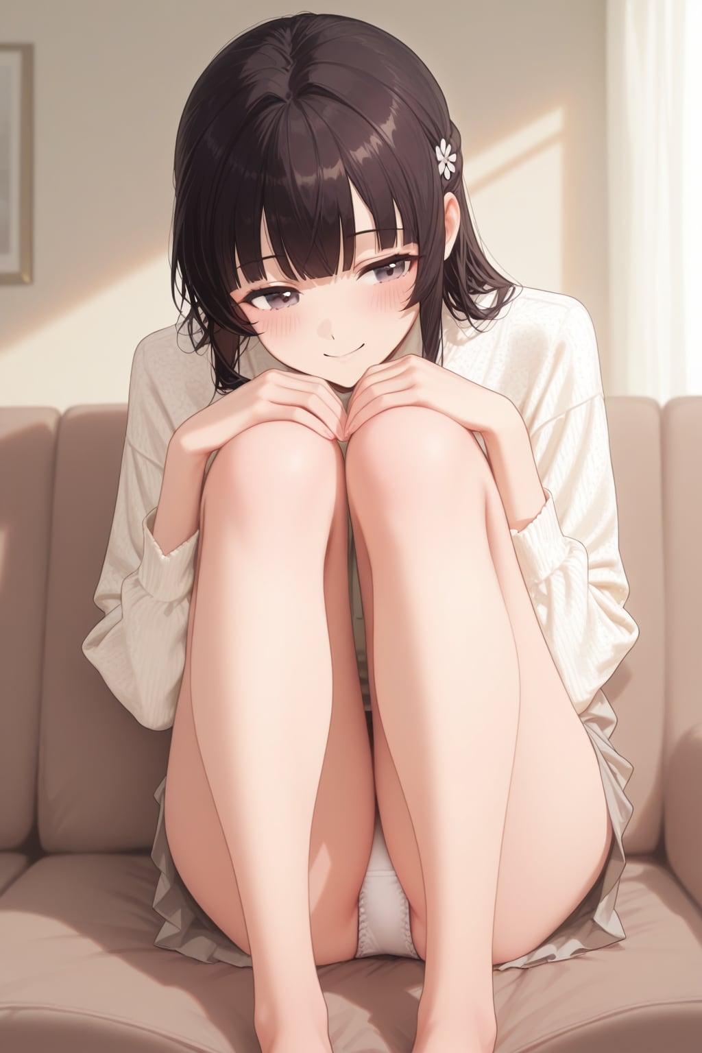 ソファーに座るまなか