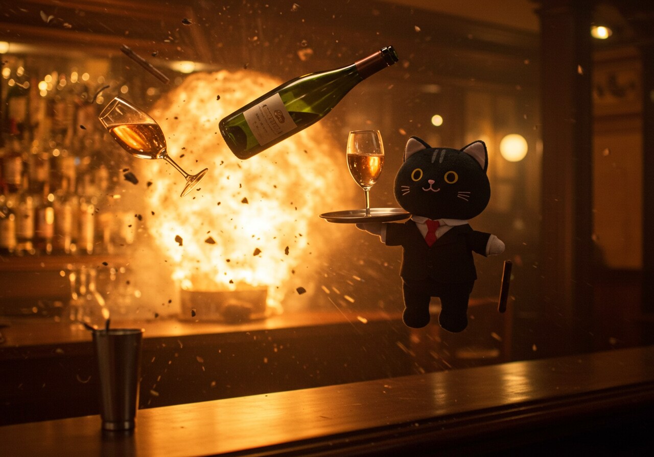 新商品のスパークワイン試飲会場な摩訶不思議食堂の黒猫バー席