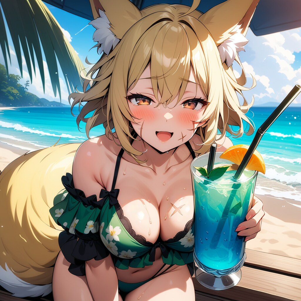 あとこのお狐さんはこんな優しそうな笑顔するキャラではないですが思いのほかジュースが美味しくてうっかり笑顔になってしまったようです。