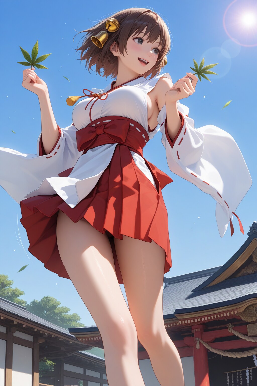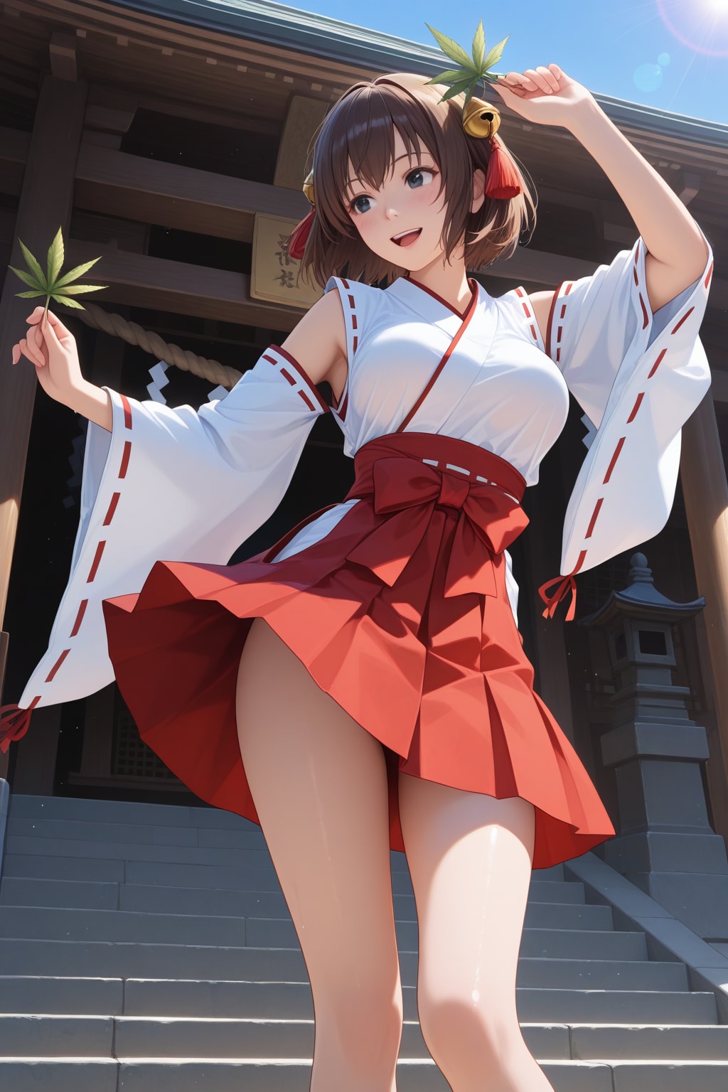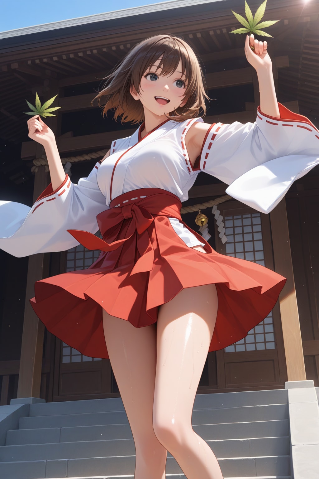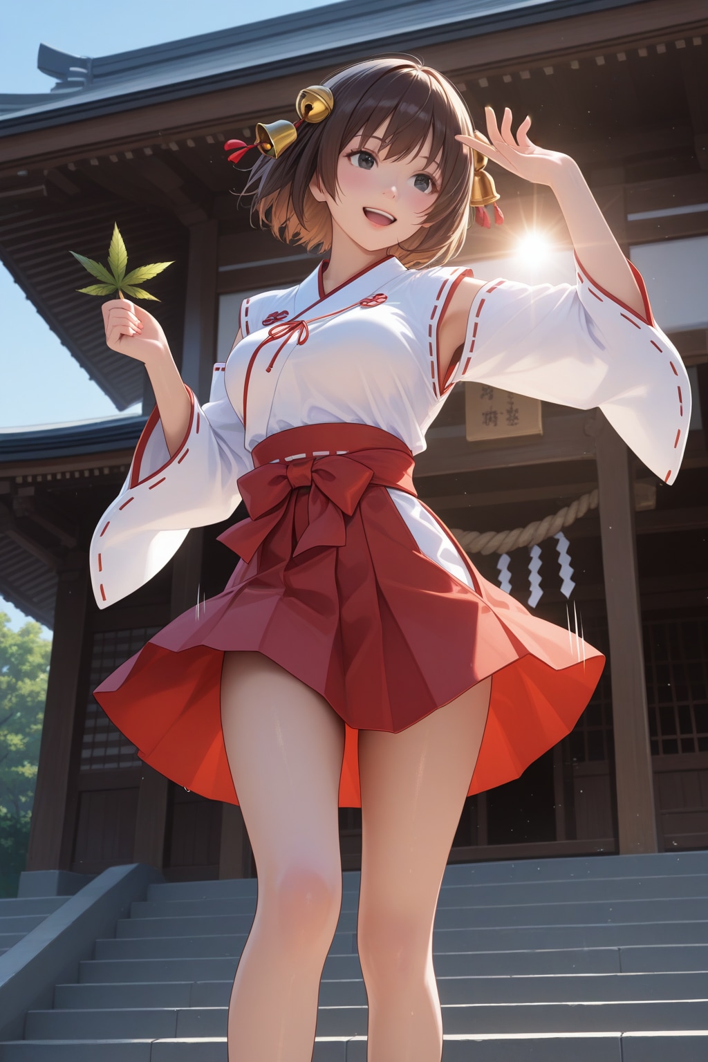 晴天に喜ぶ巫女さん
