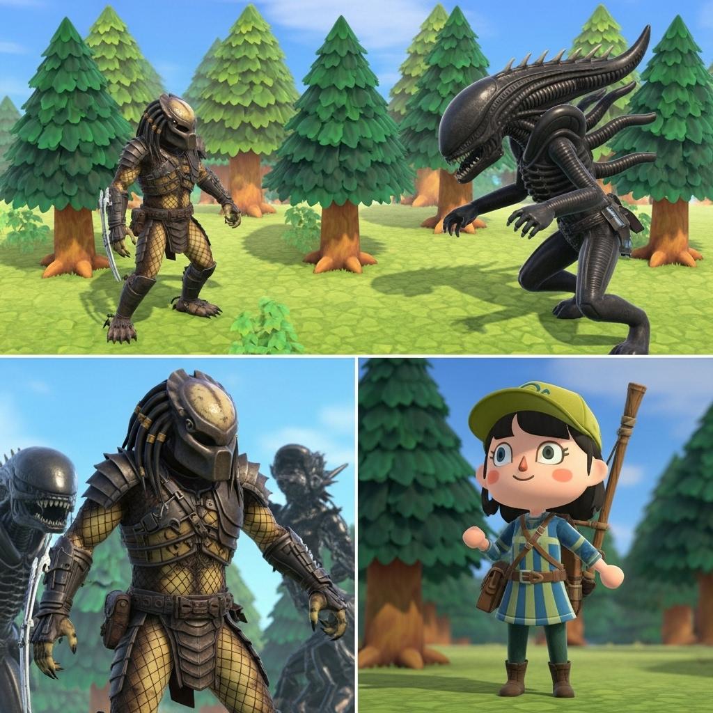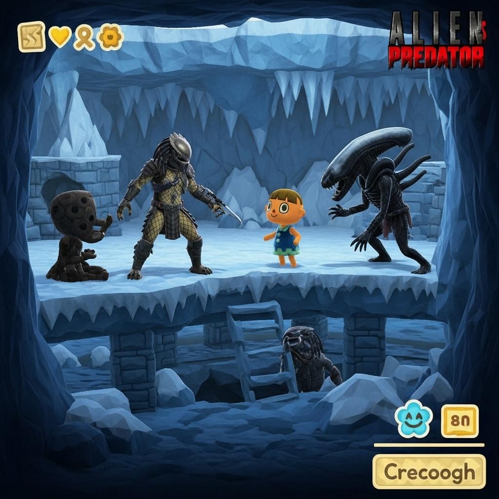 「エイリアンvsプレデター」は南極の地下遺跡が舞台ですが、おいちち参加のため前半は森にしました。
