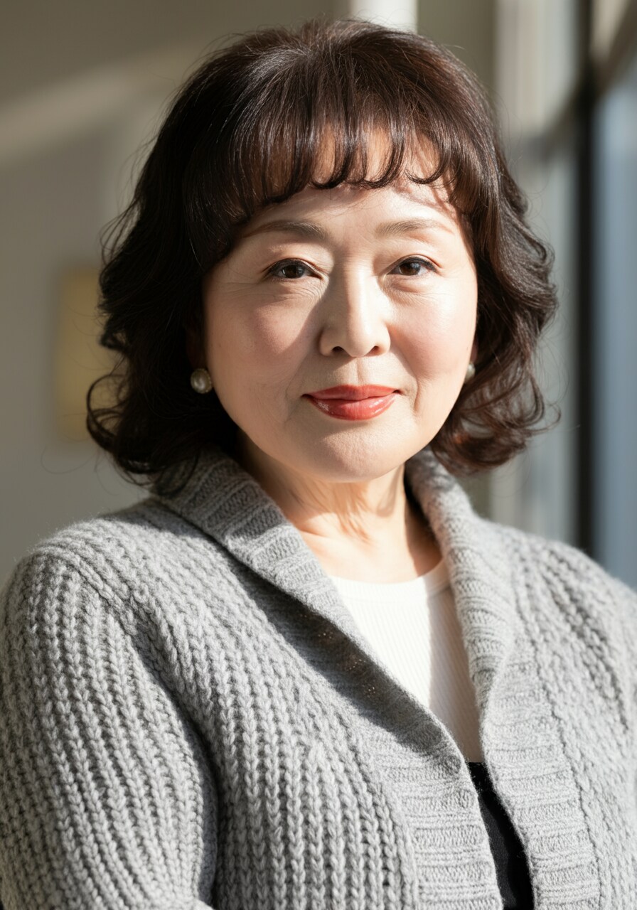 痩せでもぽっちゃりでもよい。 少しエレガントなイメージの優し気なおばあちゃん