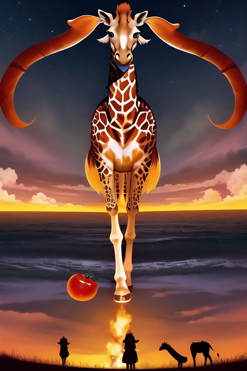 7枚目 illustration , giraffe , shrimp , tomato , comic cover page ,