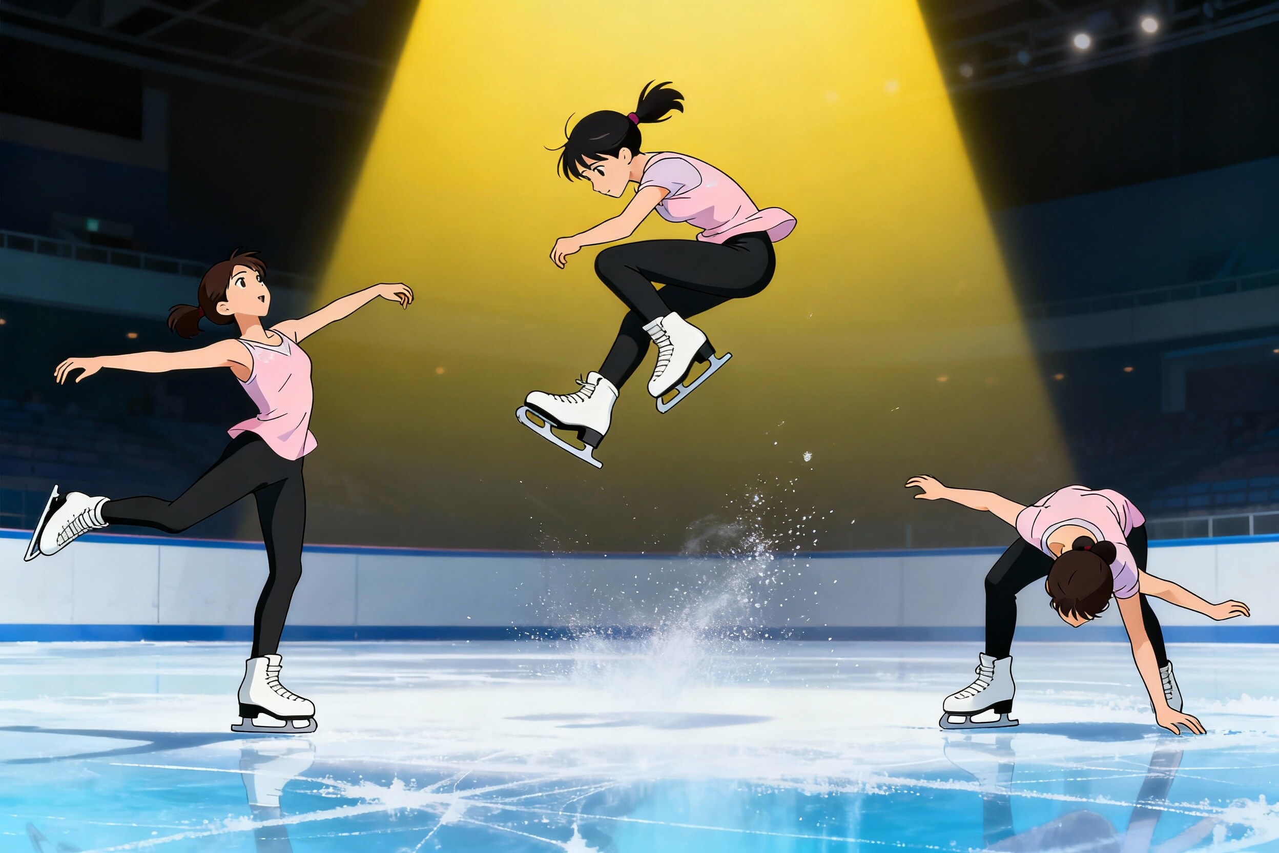 両手を上に上げるタノジャンプもまあまあ再現してくれている感じがしますが、アイススケートのジャンプとしては、完成度が。。。