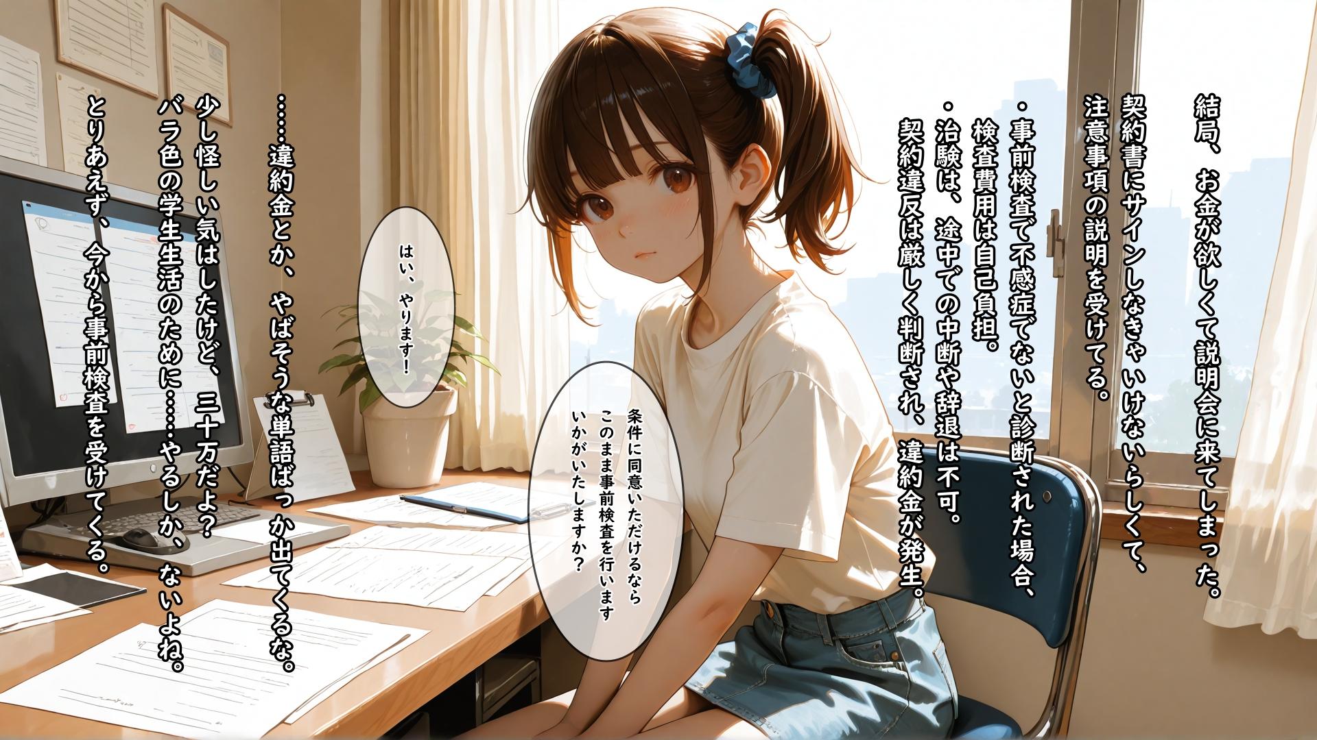 「高額報酬の治験に応募したら不感症治療用の触手で快楽漬けにされて何回イってもやめてもらえない女の子」