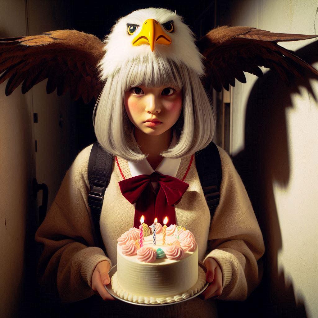 プレゼントとケーキを持って気付かれないようにそーっとそーっとノコ部屋にむかいます。