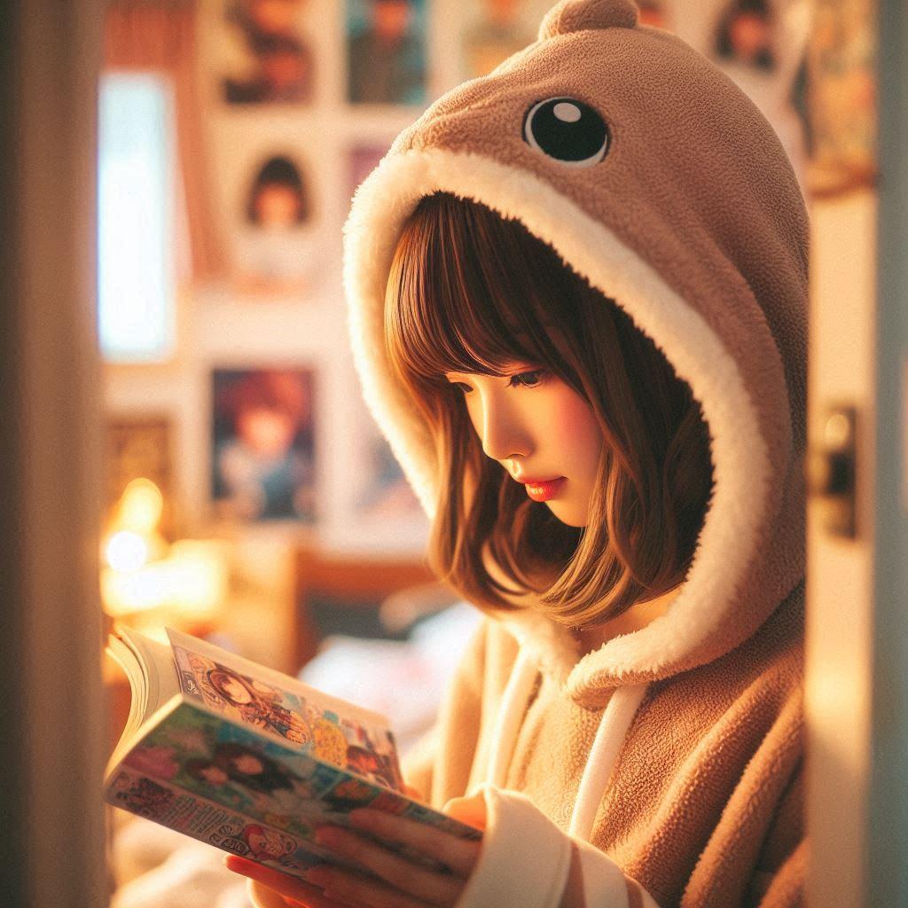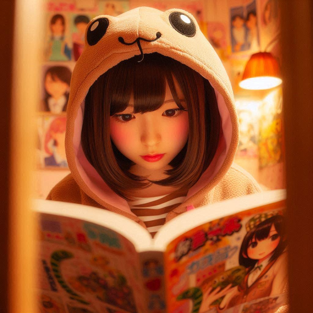 あ!いたいた!漫画を読んでいます。大好きなノコ金漫画を読んでいるようですね!