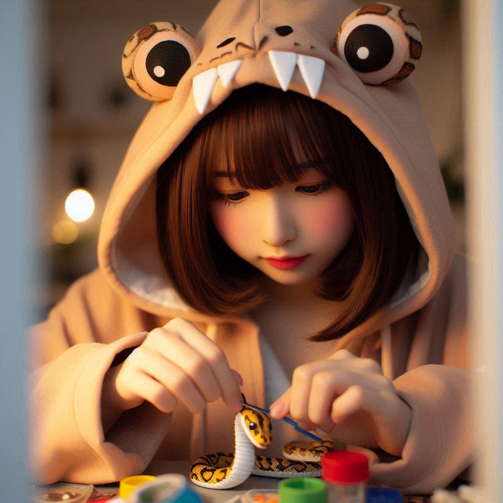 ん?今度はなんでしょう?プラモデルらしきものを作ってますね。ヘビのプラモデルかな?そんなものが売っているのでしょうか?