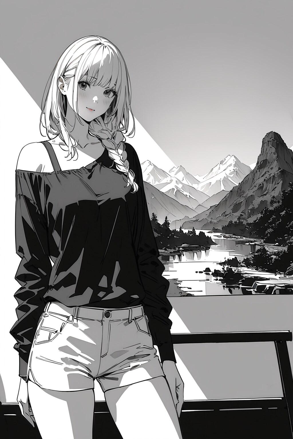 元絵のネガティブプロンプトからプロンプトに (monochrome:1.3), をカットアンドペースト。