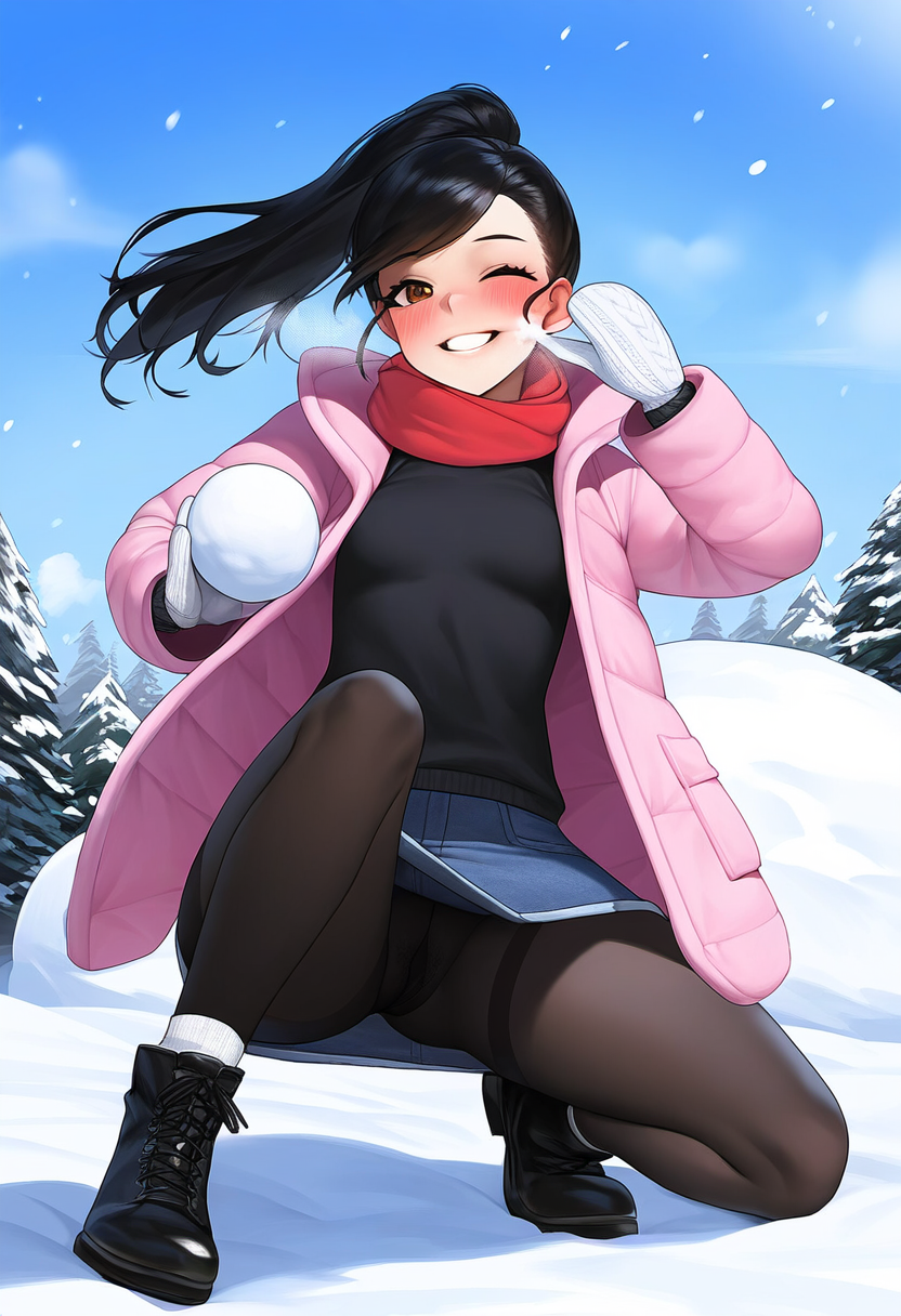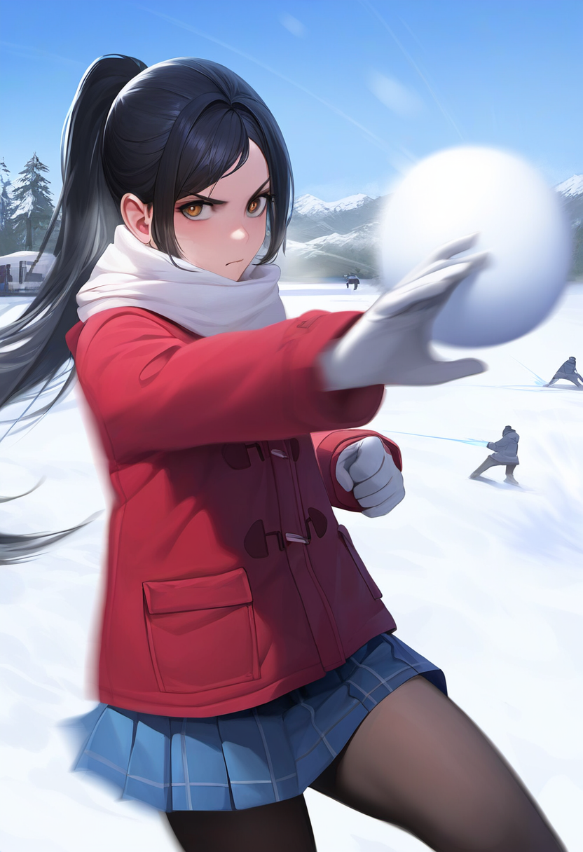 [お馬鹿イラスト_雪合戦] この一撃で決める!