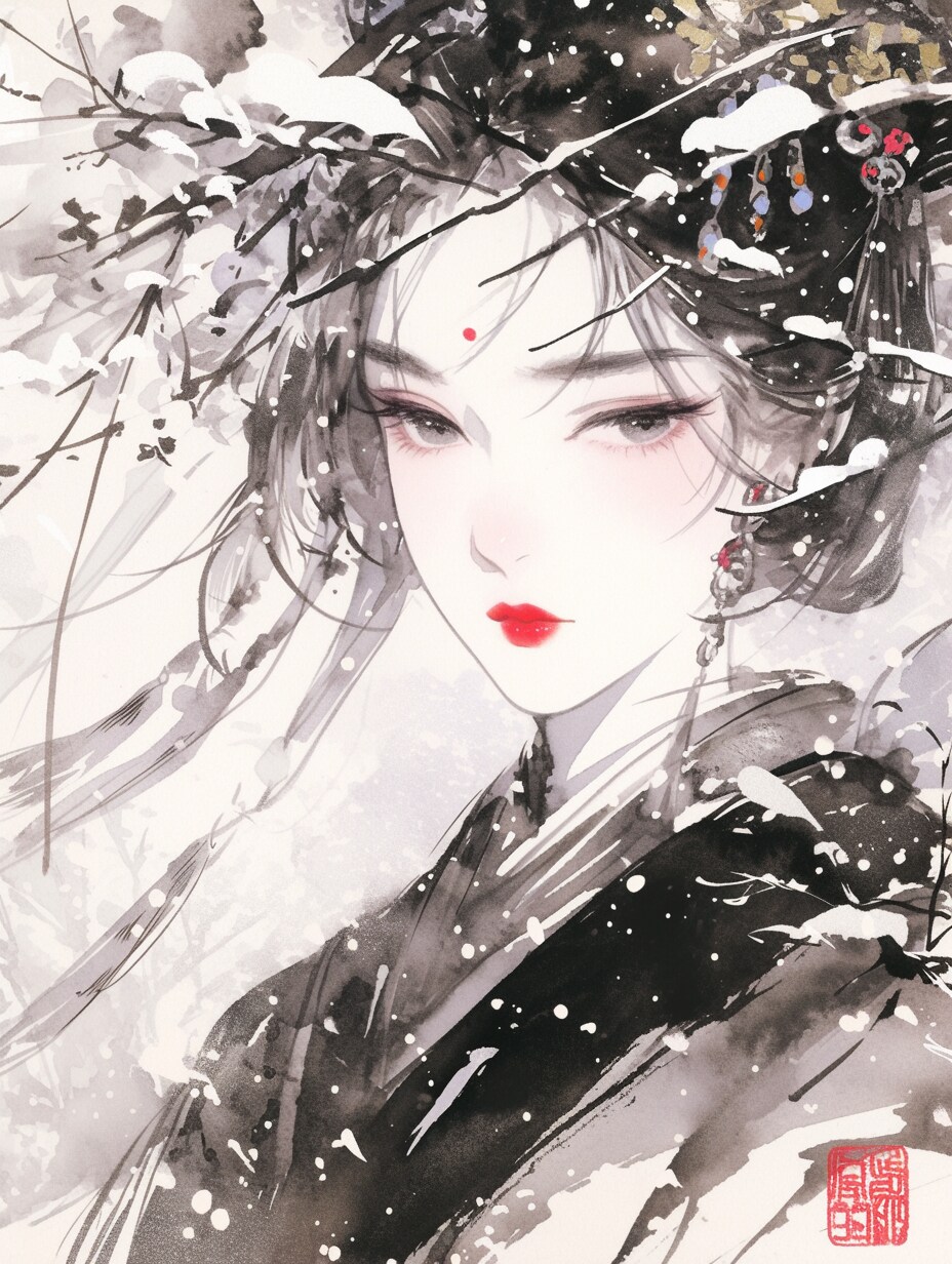 中国画風のシックなスタイルでの作画