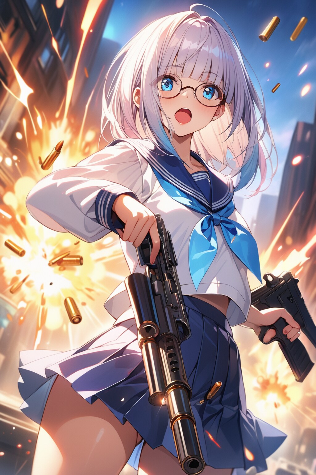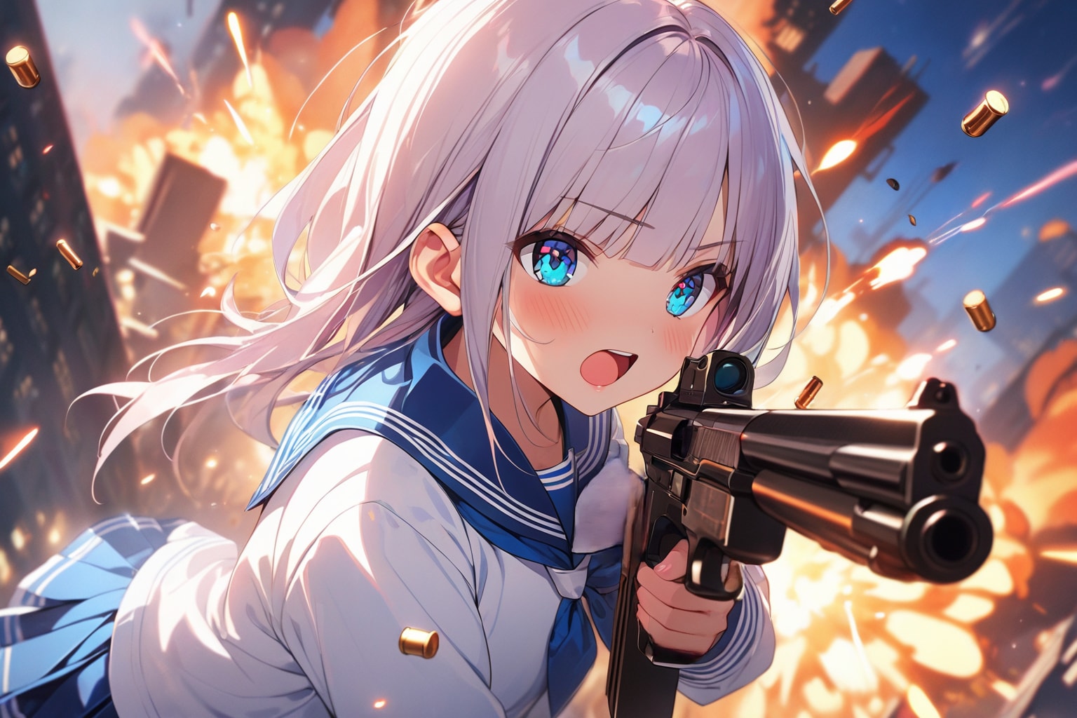 カルネ「誰かにゃ!♪サプレッサー銃(消音器付銃)なんて、シケたの撃ってるの♪!うちらのオーケストラ(銃撃戦)が台無しや!!」ドムッ!ドムッ!ドムッ!