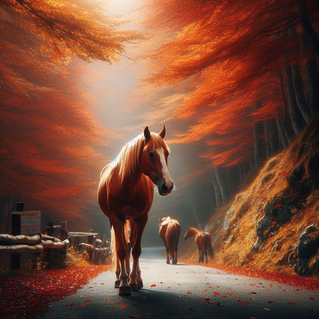 馬と紅葉