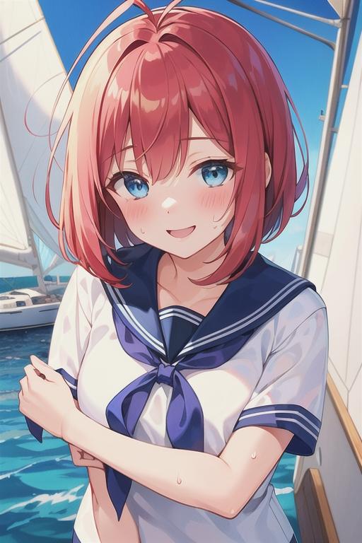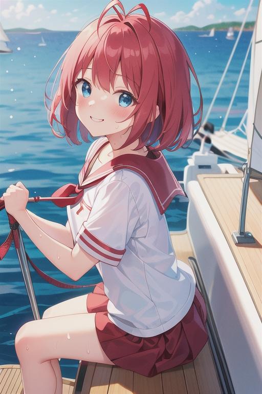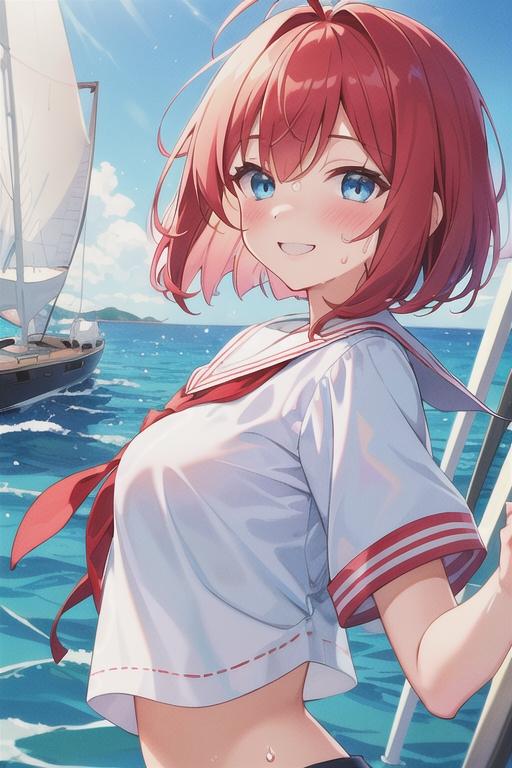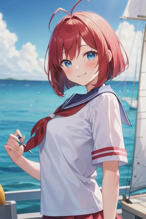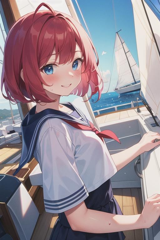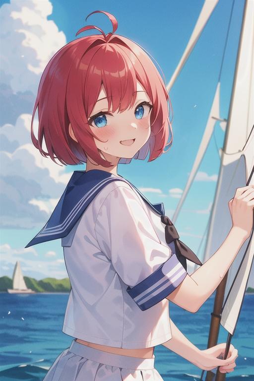 カエデ「セーリングってセーラー服着てやるのがルールだってプロデューサーさんに言われたべ。何パターンか持ってきてんのよ。」