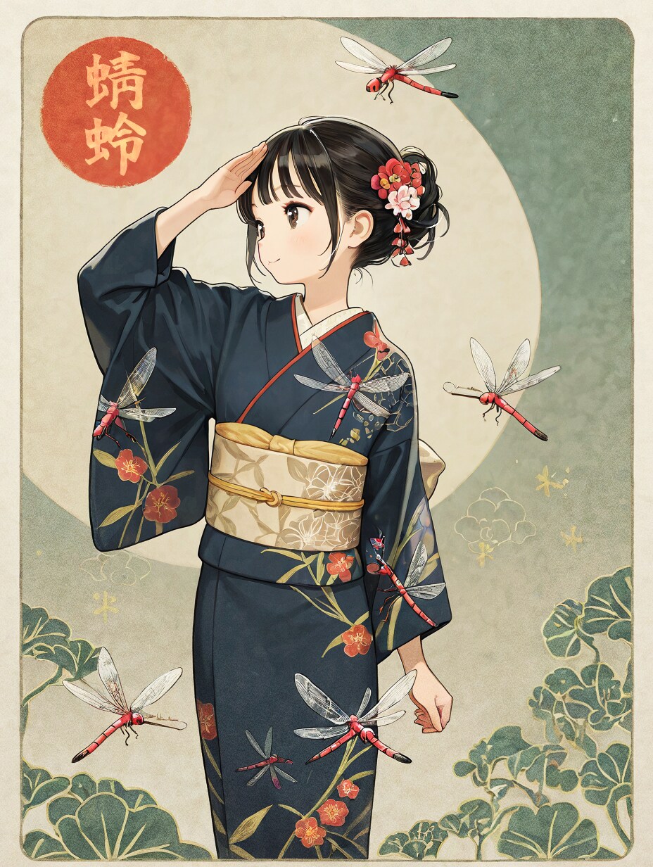 文様例:矢車に蜻蛉、蜻蛉菖蒲、蜻蛉散らし