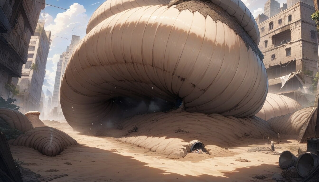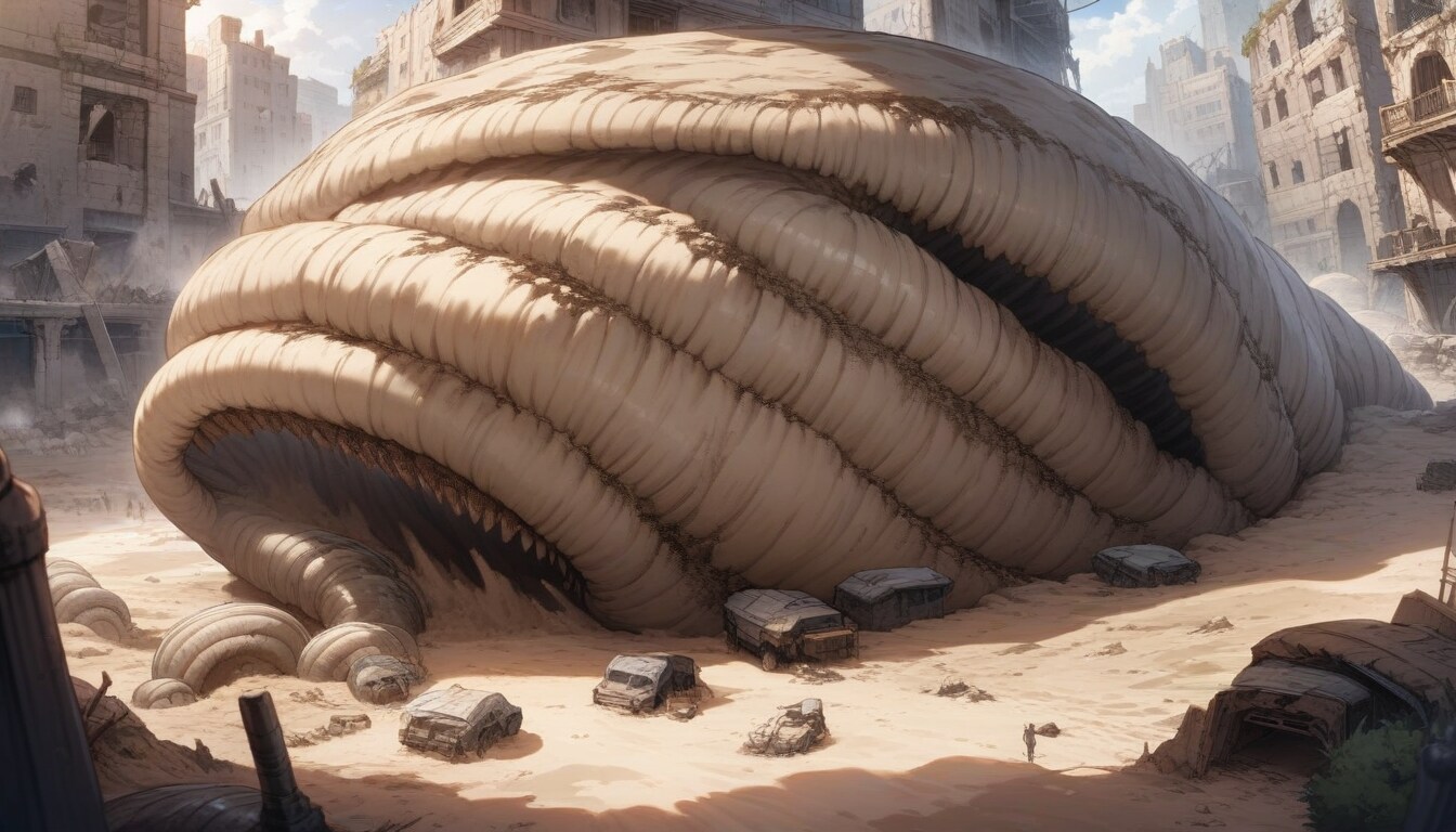 巨大な環形動物門にも見える遺跡群、付近では終末前ではありふれた、しかし現在では希少な鉱物が産出されるという