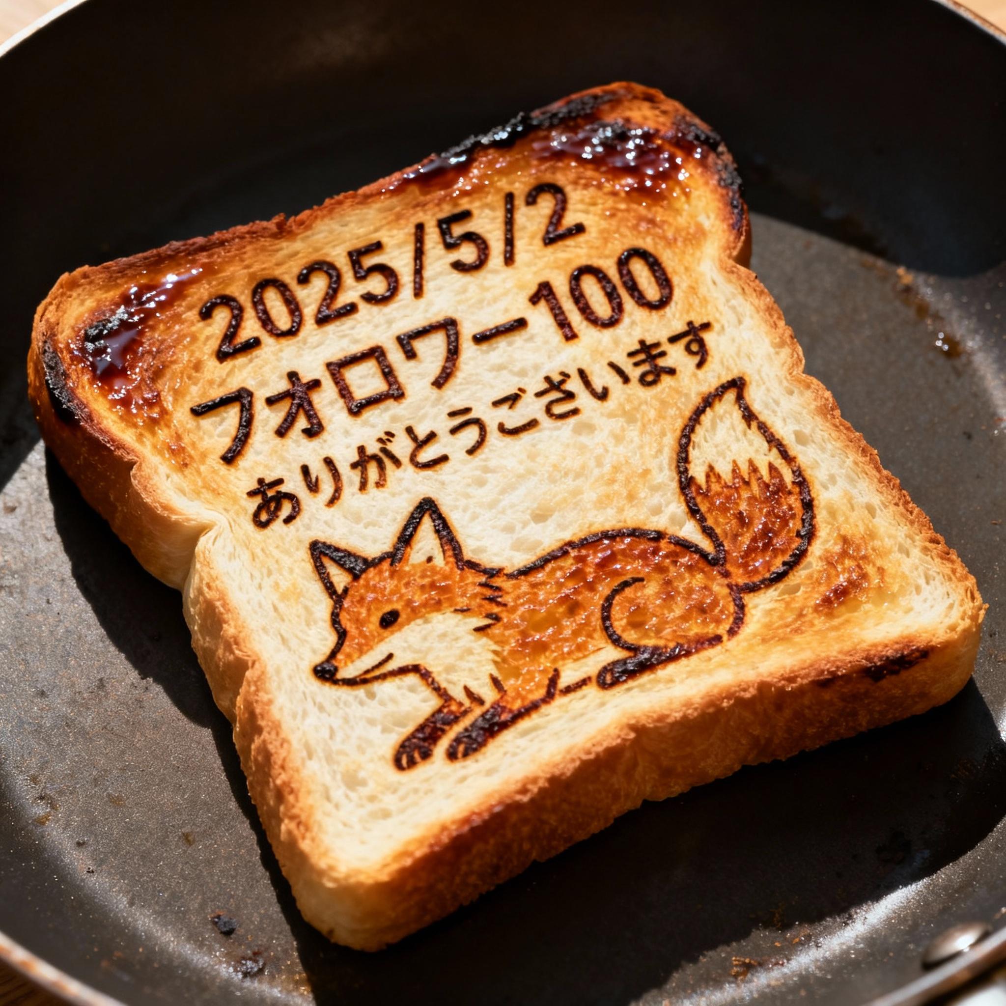 ※4〜5が、nano-bananaです。食パンはきつね色に焼けていますが、日本語表記が残念な結果です。