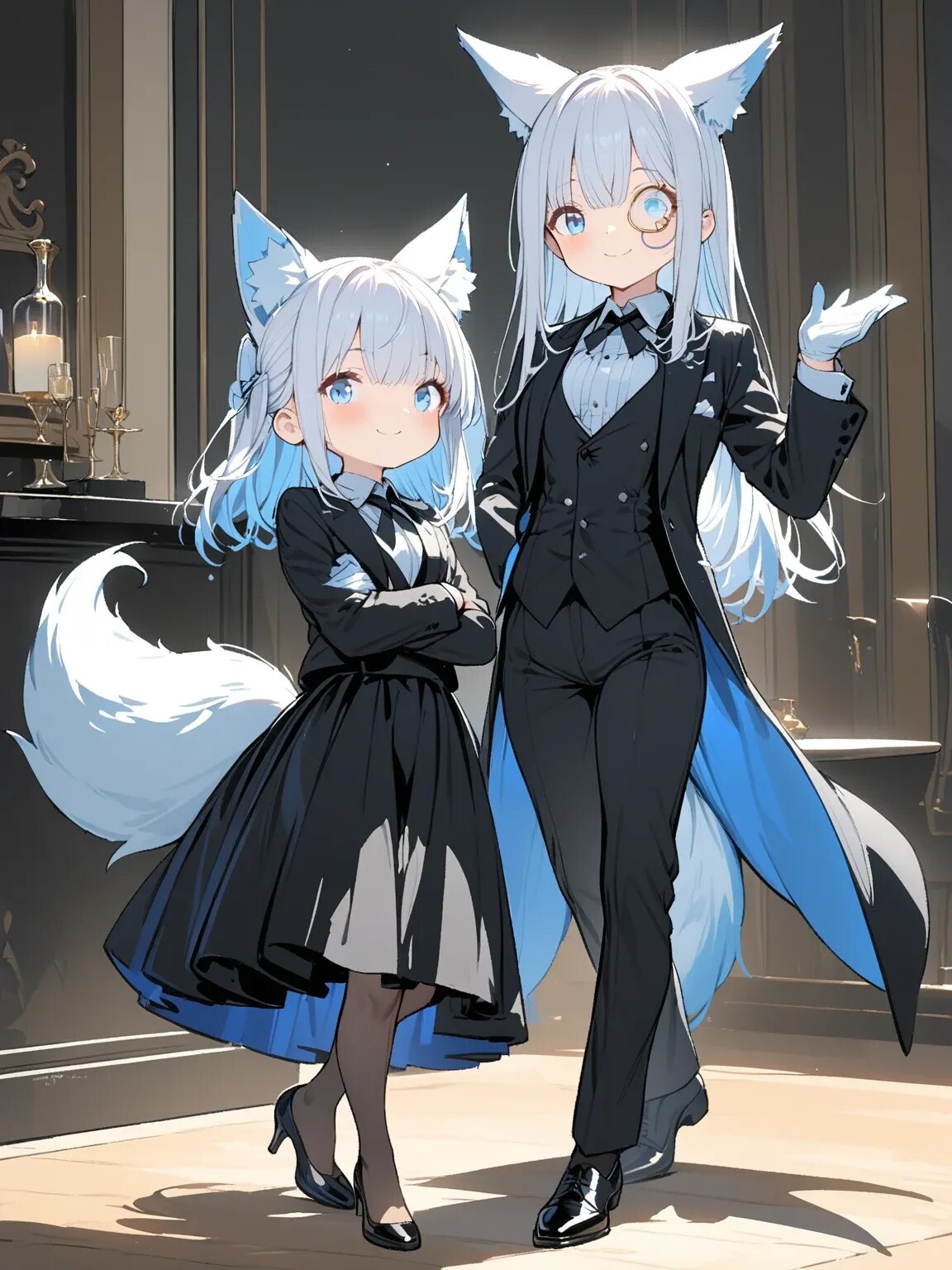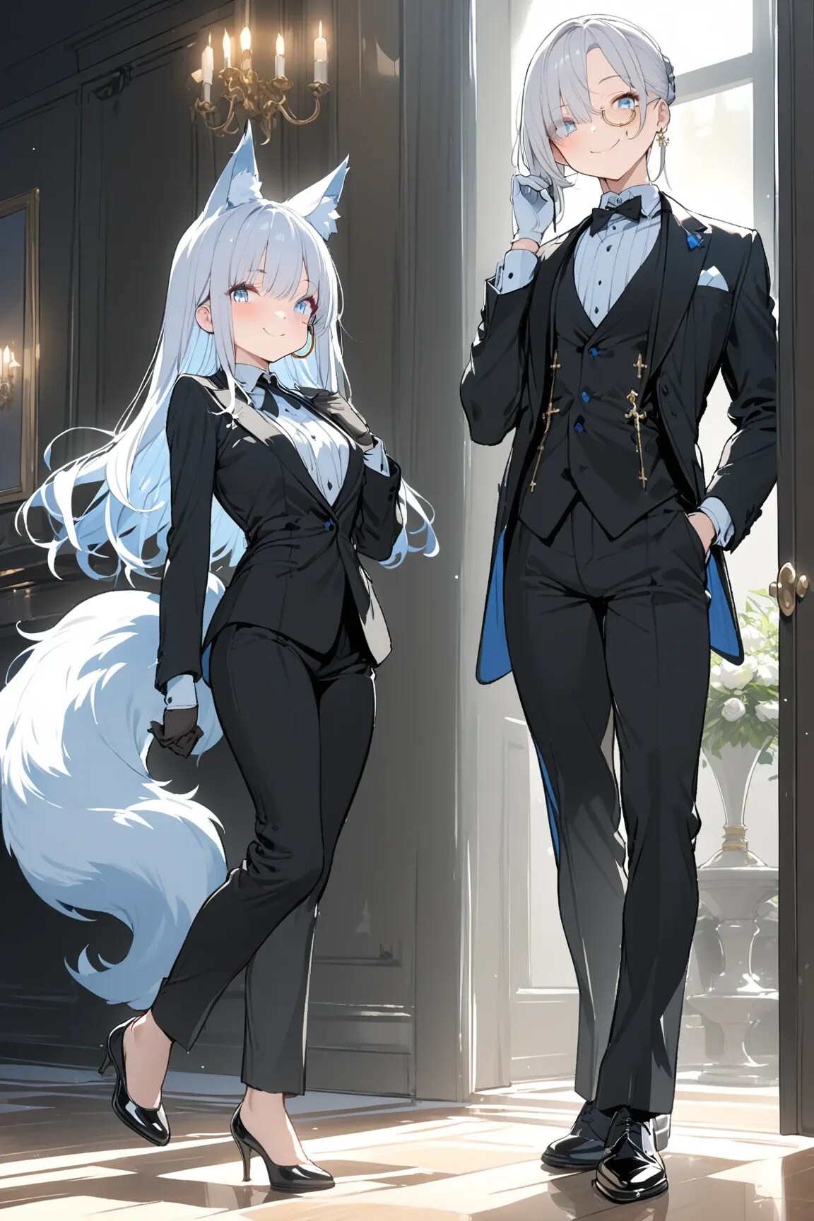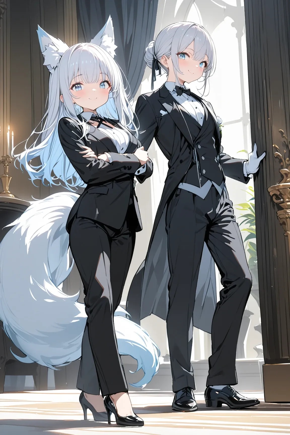 銀髪少女の執事とイケメン執事の