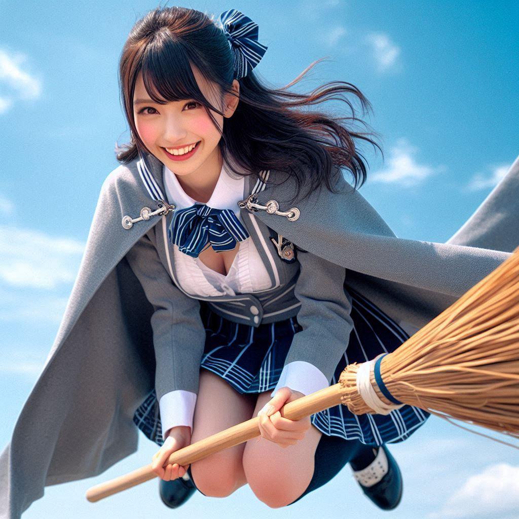 (先輩魔女さんは、さすがにサービス精神が豊富。ほうきが逆でも飛べるらしい)(*^^)v