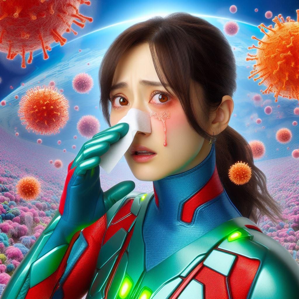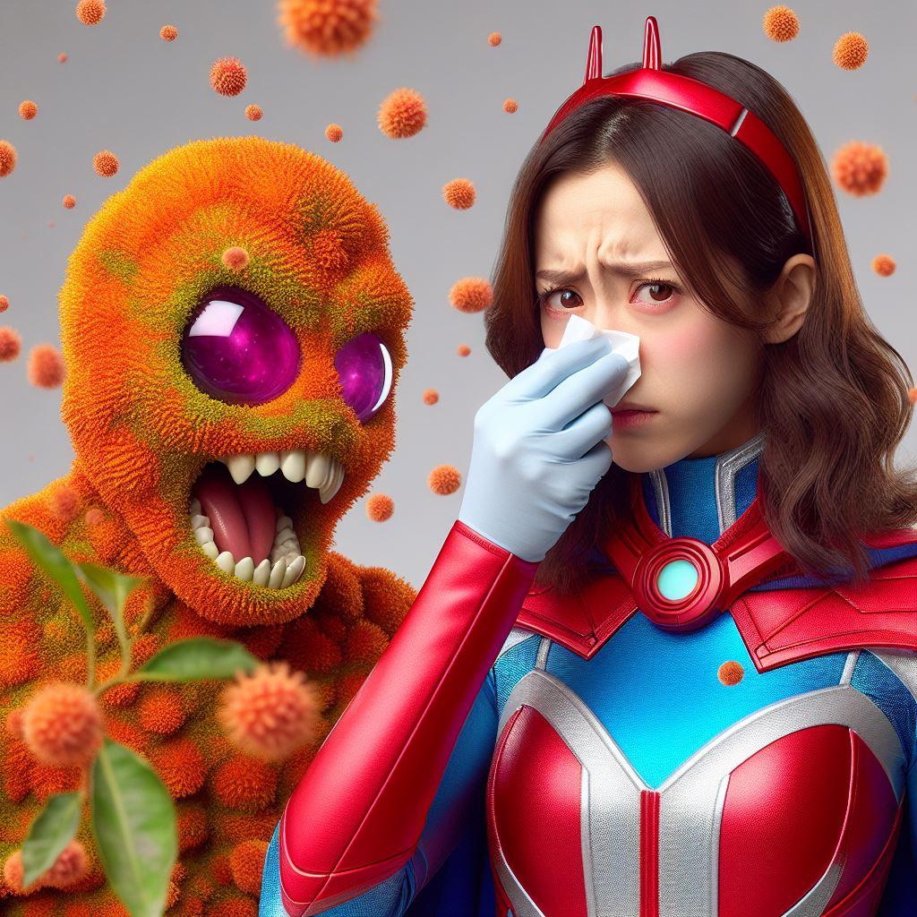 ヒーロー戦隊が駆けつけましたが、逆に花粉まみれにやられてしまいました…