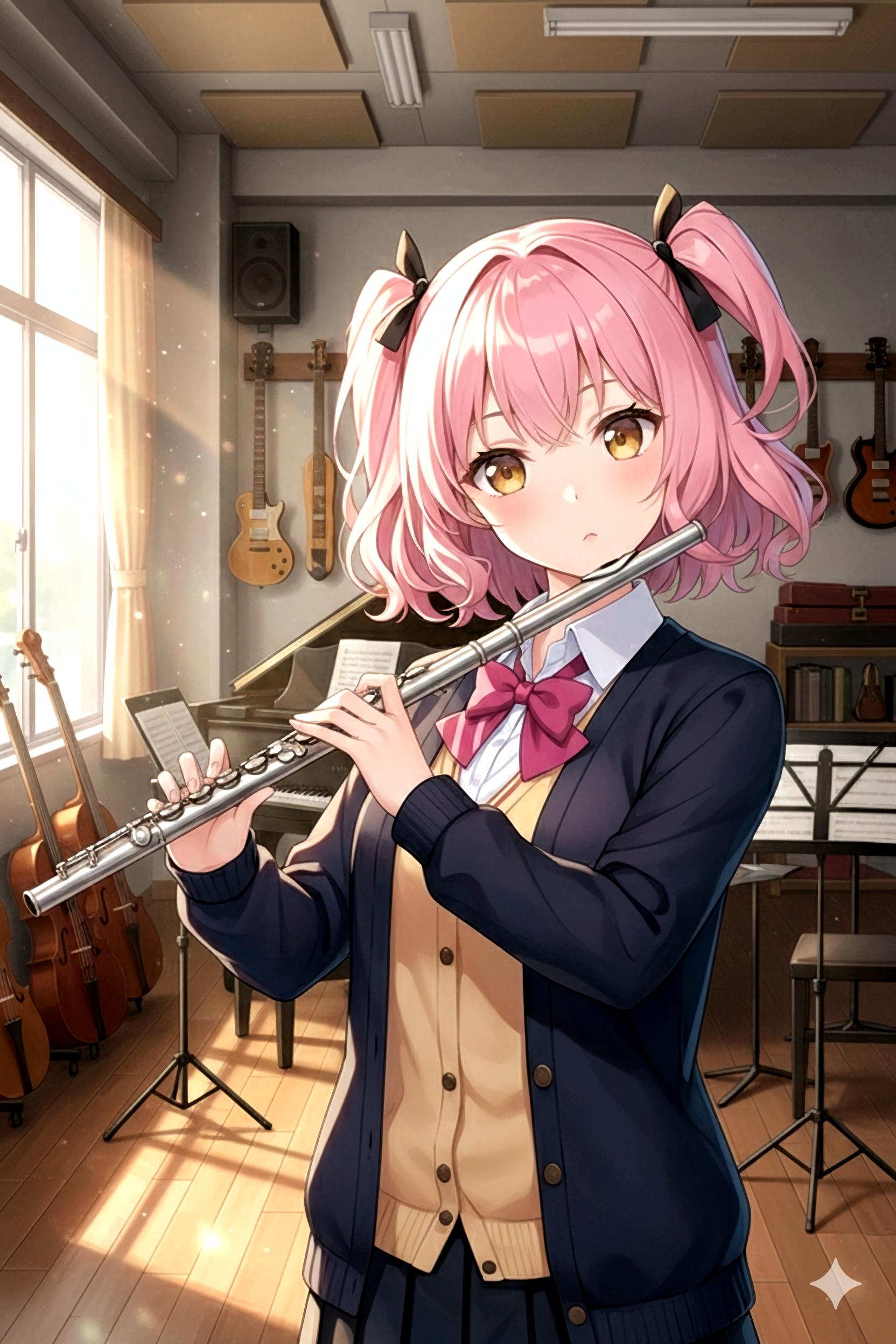 その横で、ナツミがギターやトランペットを構え、アキナがサックスを吹き、ハルネのフルートが重なる。