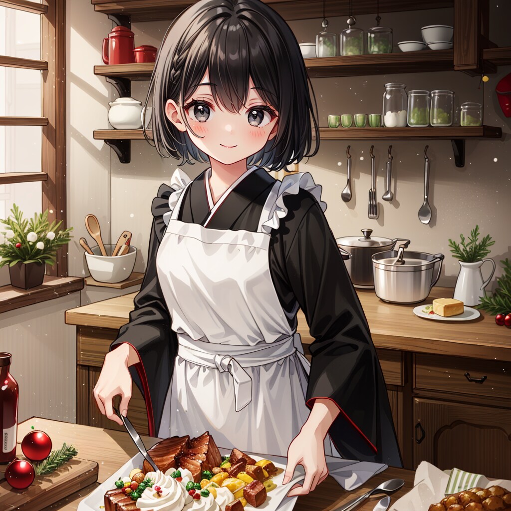 クリスマスパーティの料理作りを手伝う料理上手な僧侶