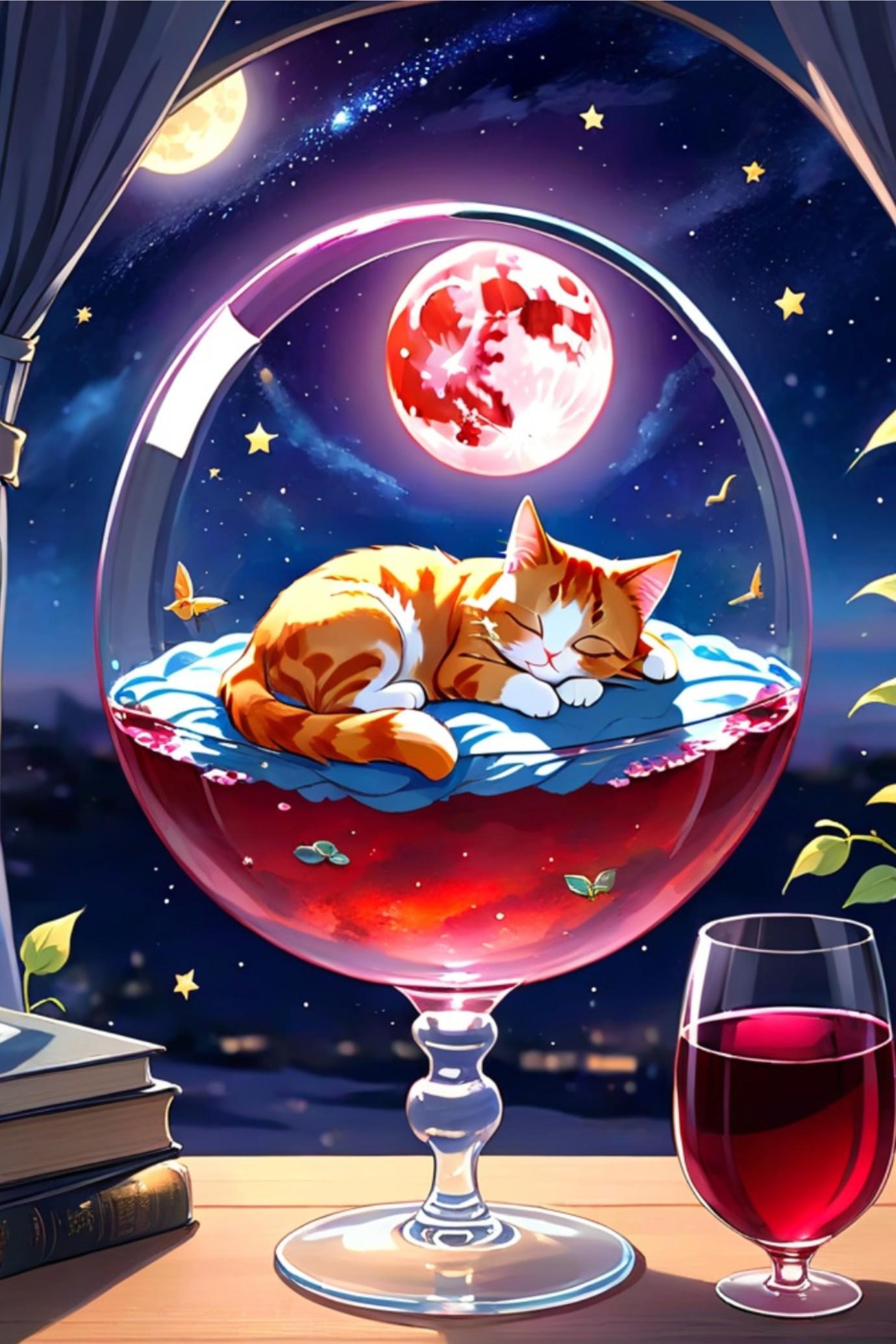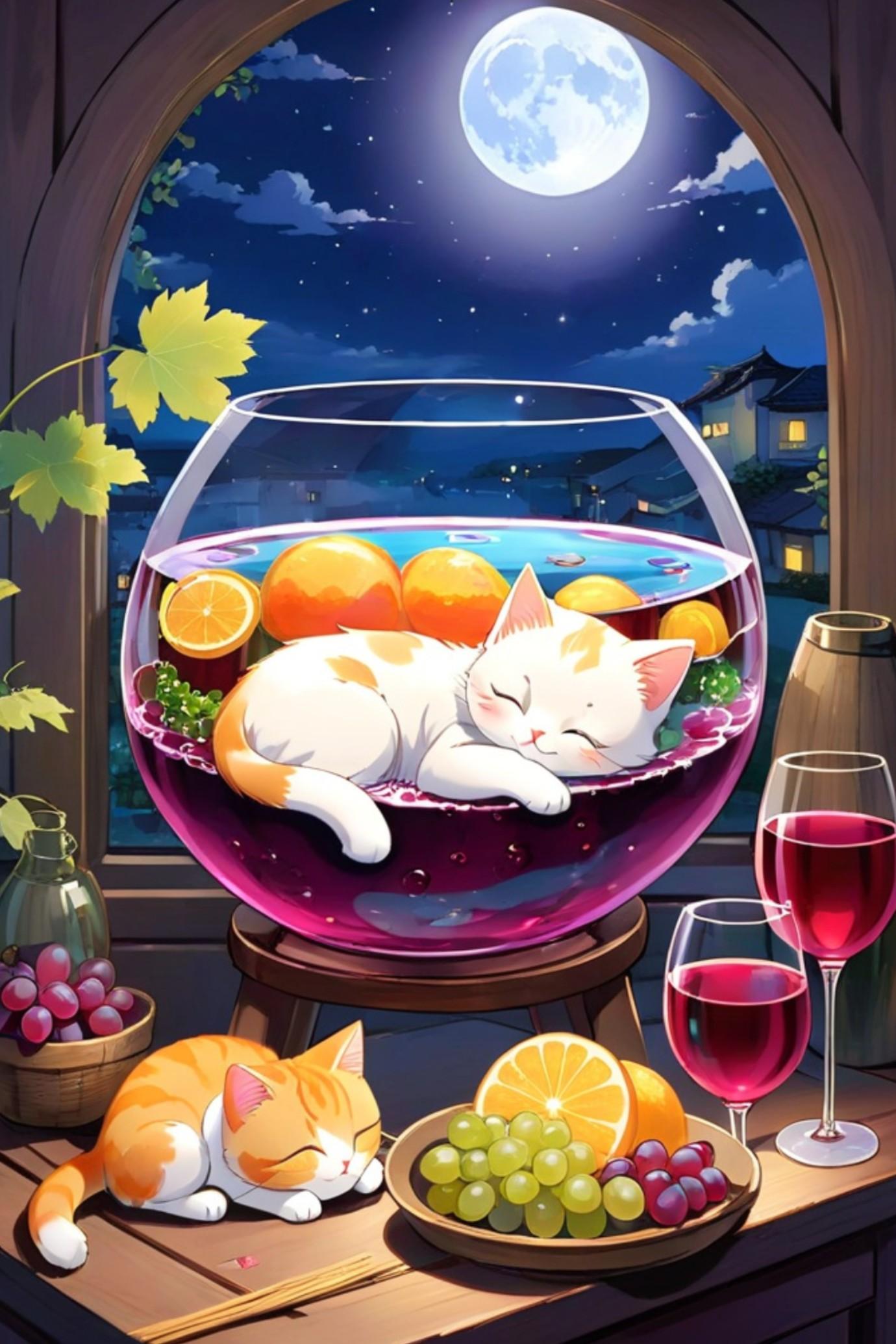 猫と満月と金魚鉢