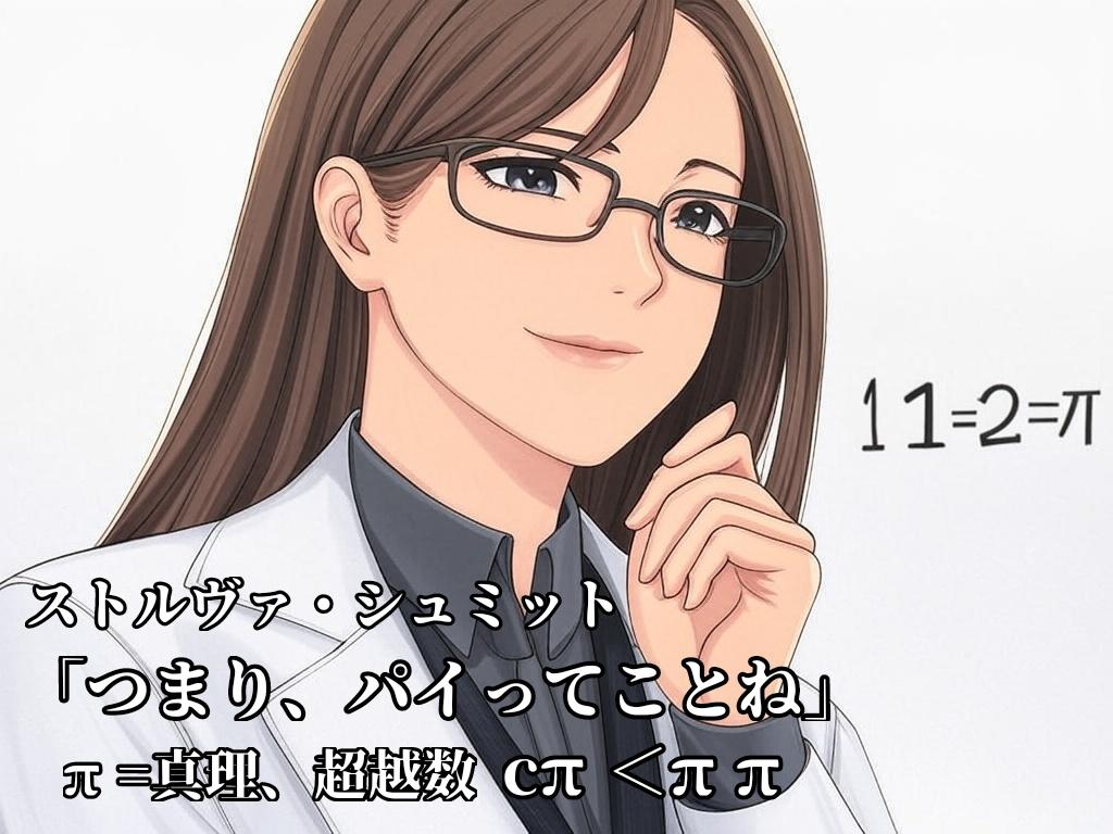 ストルヴァ・シュミットは早速、この論を学会に提出、人類が永らく、頭を悩ましていたπの真理に気づくことができたのは、