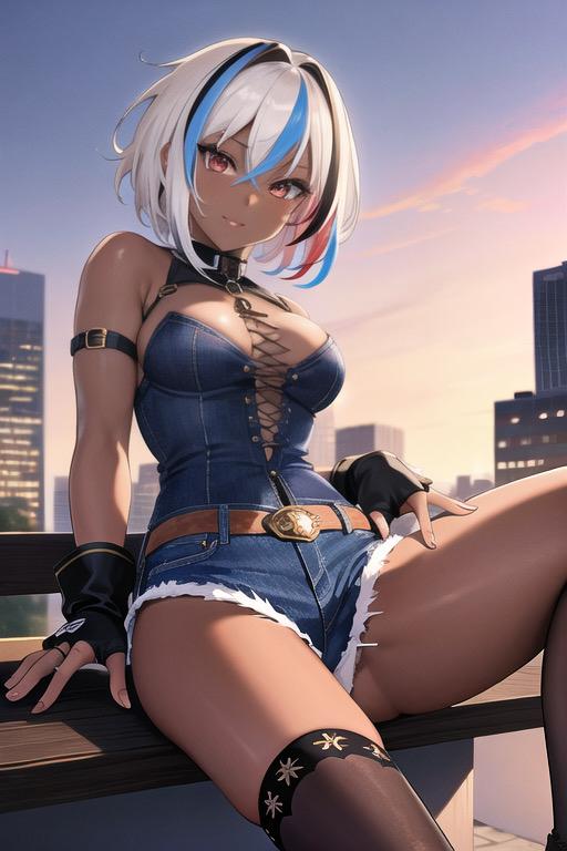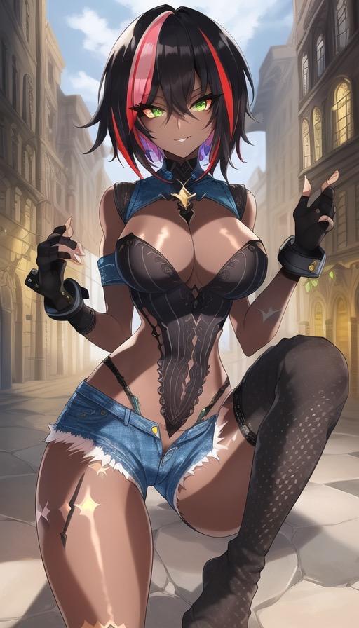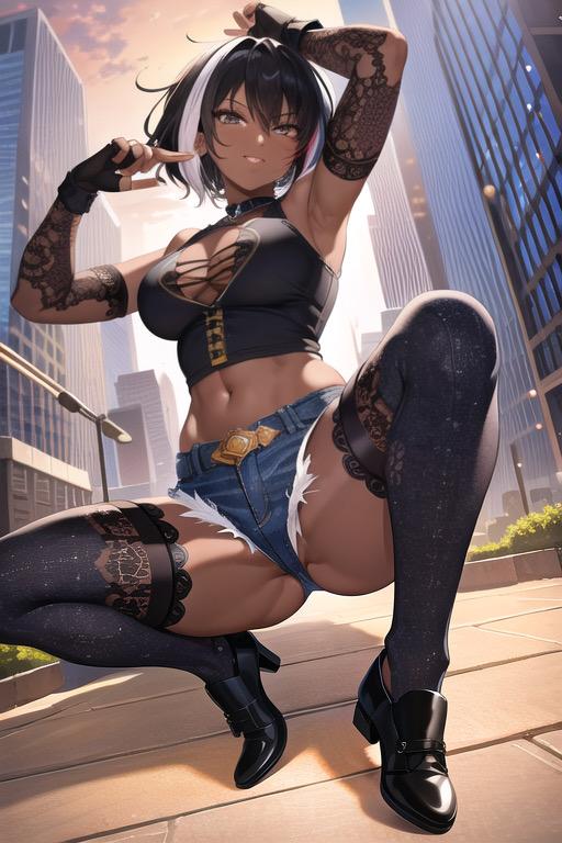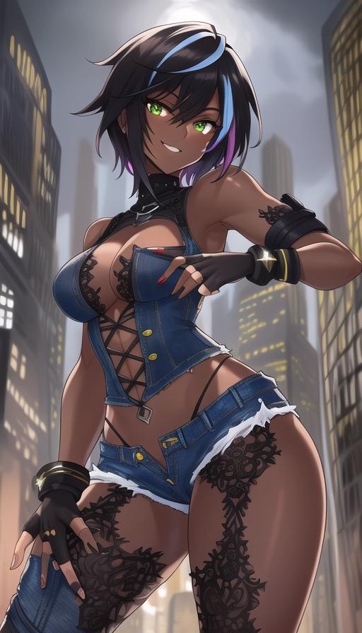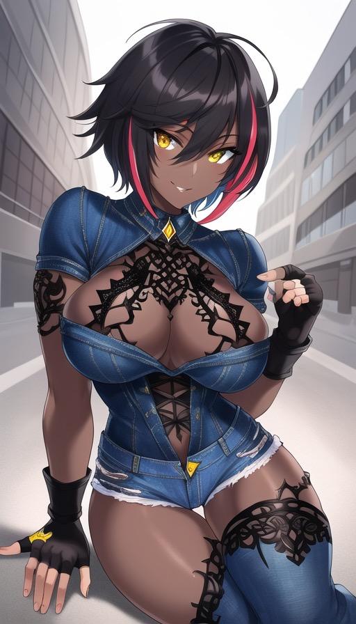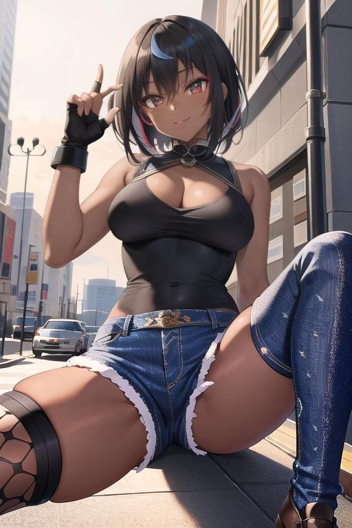 悪役が似合いそうな黒髪ショートギャルイラスト。