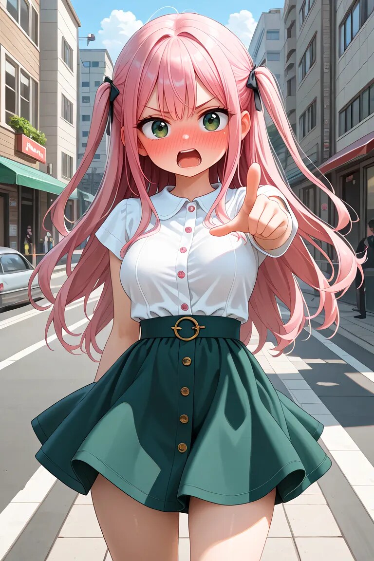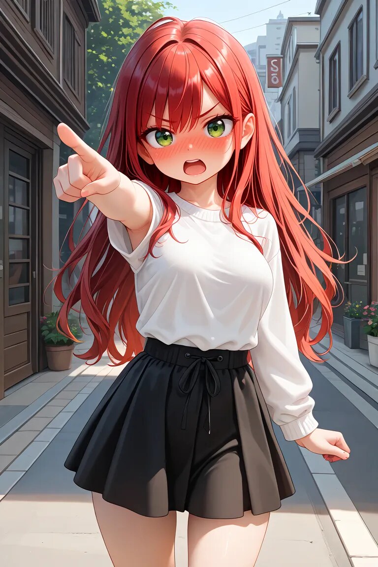 ふくれっ面は「(pout:1.2)」、赤面は「embarrased, angry, open mouth, full face blush」を指定しています。