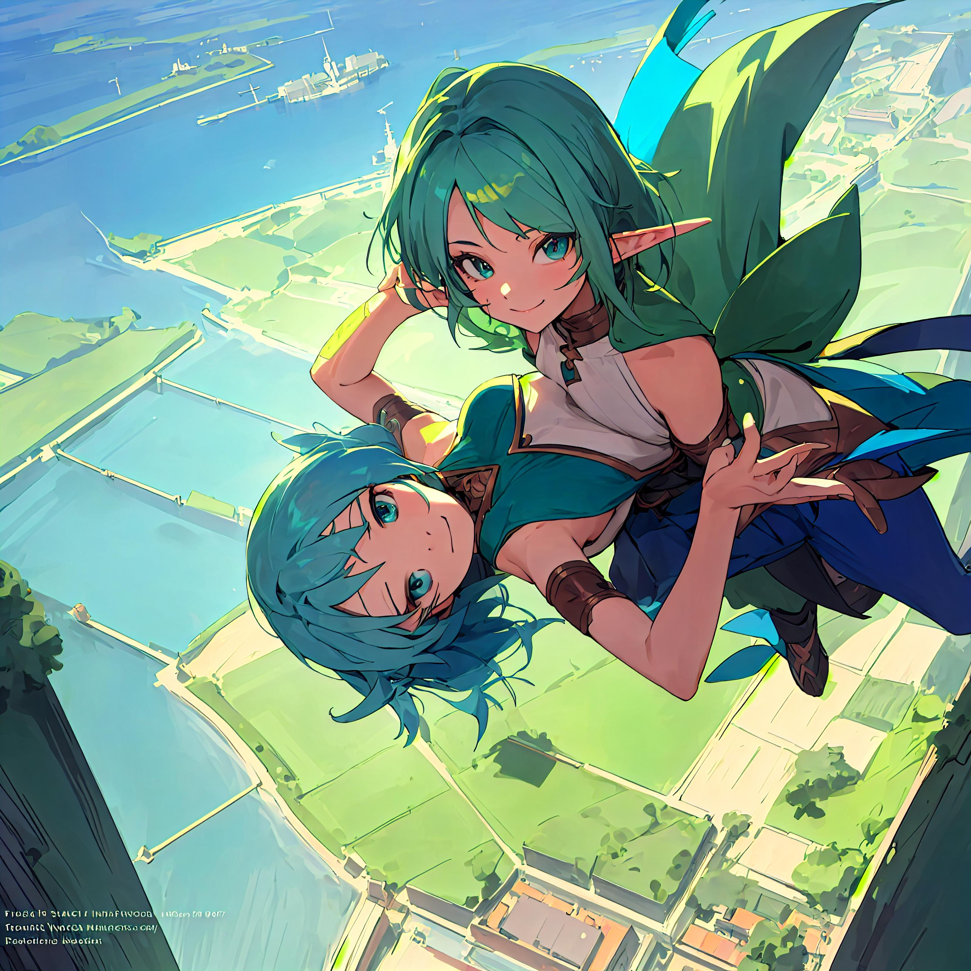 アネ・Ane(青髪のエルフ。おっとりした性格で魔法はピカ一、貞操観念はゆるめでその事で妹に心配をかけている)