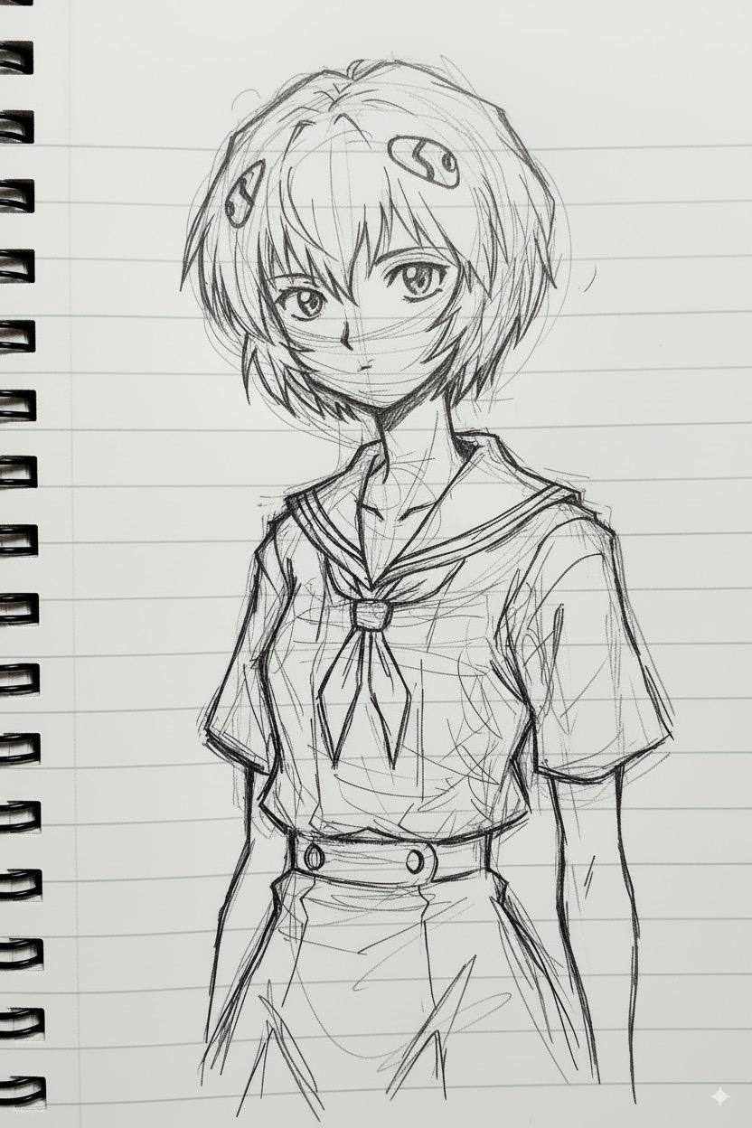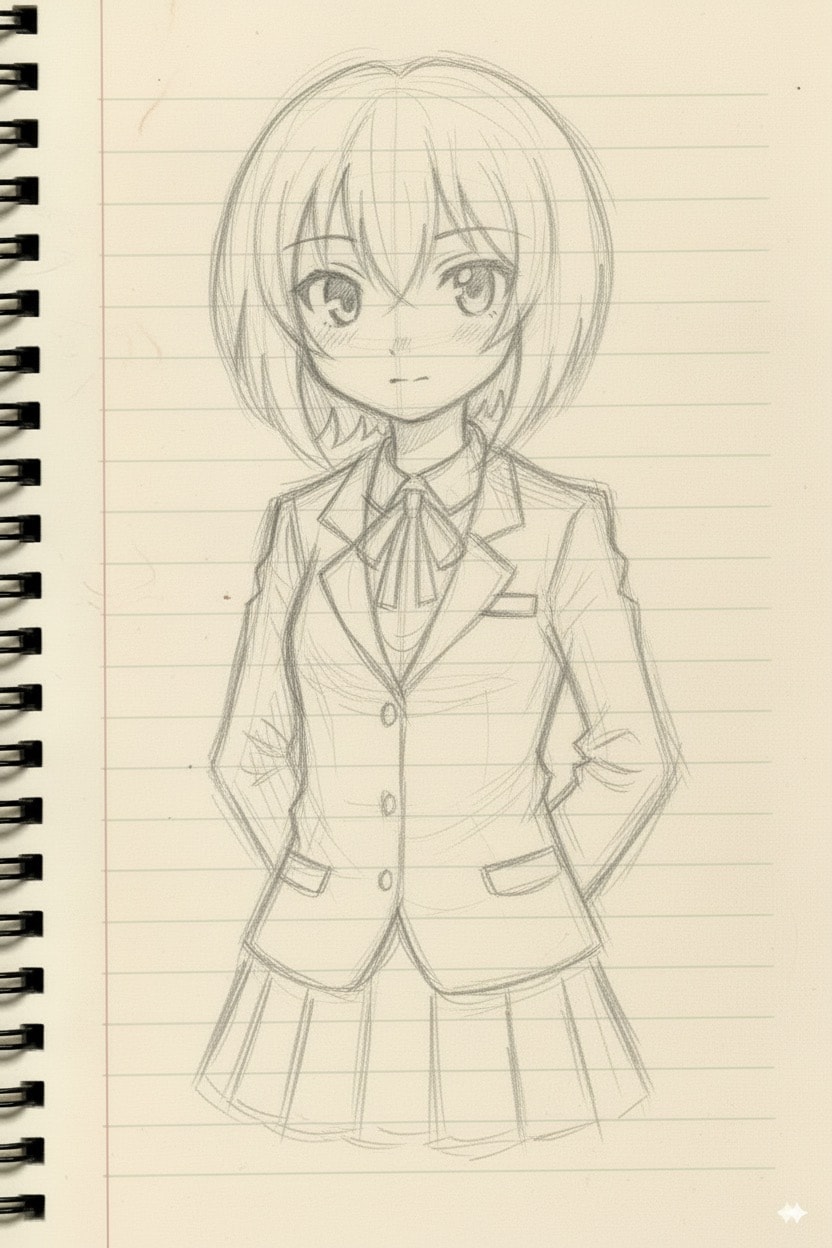 元絵をNano Bananaさんに投げて、「もっと下手にしてください。瞳のバランスを崩して。体のバランスを崩して。無駄な線を増やして。」等とお願いすると出ました。