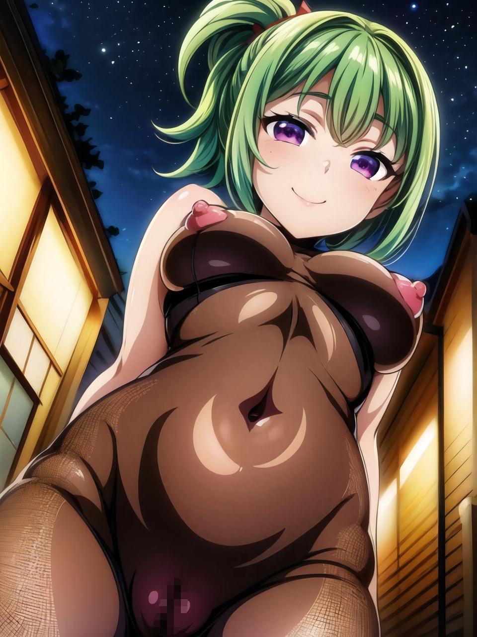 二次おっぱいポロリ130《緑髪あみあみボディースーツ》