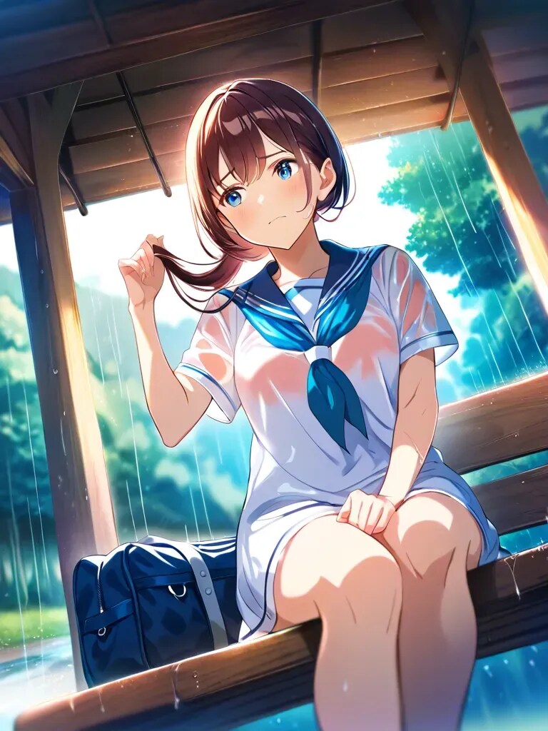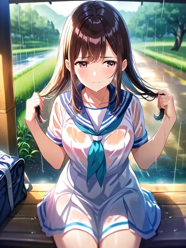家に電話して迎えに来てもらうか、それとも透け透けの恰好でバスに乗るか、