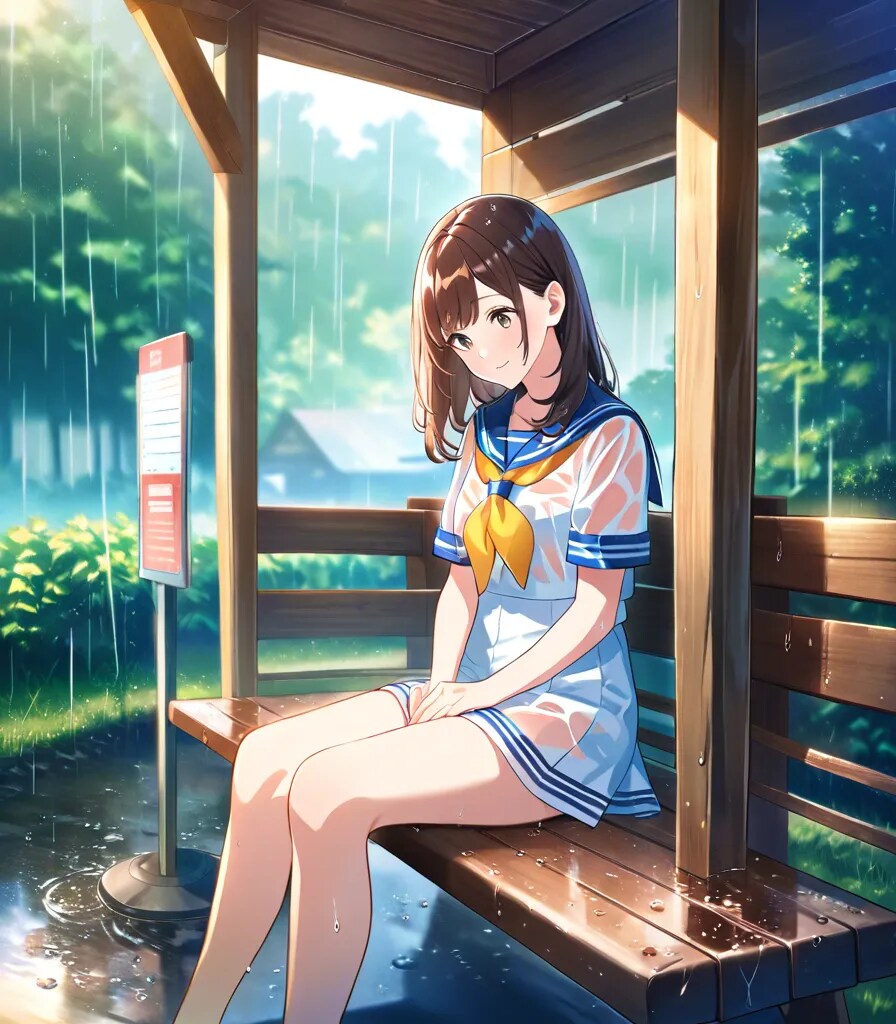 雨のバス停