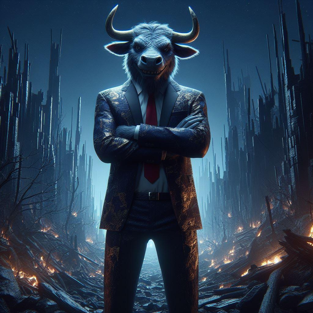 雄牛男は、避けも防ぎもせずに、ニヤニヤ笑って全て当たるに任せている。